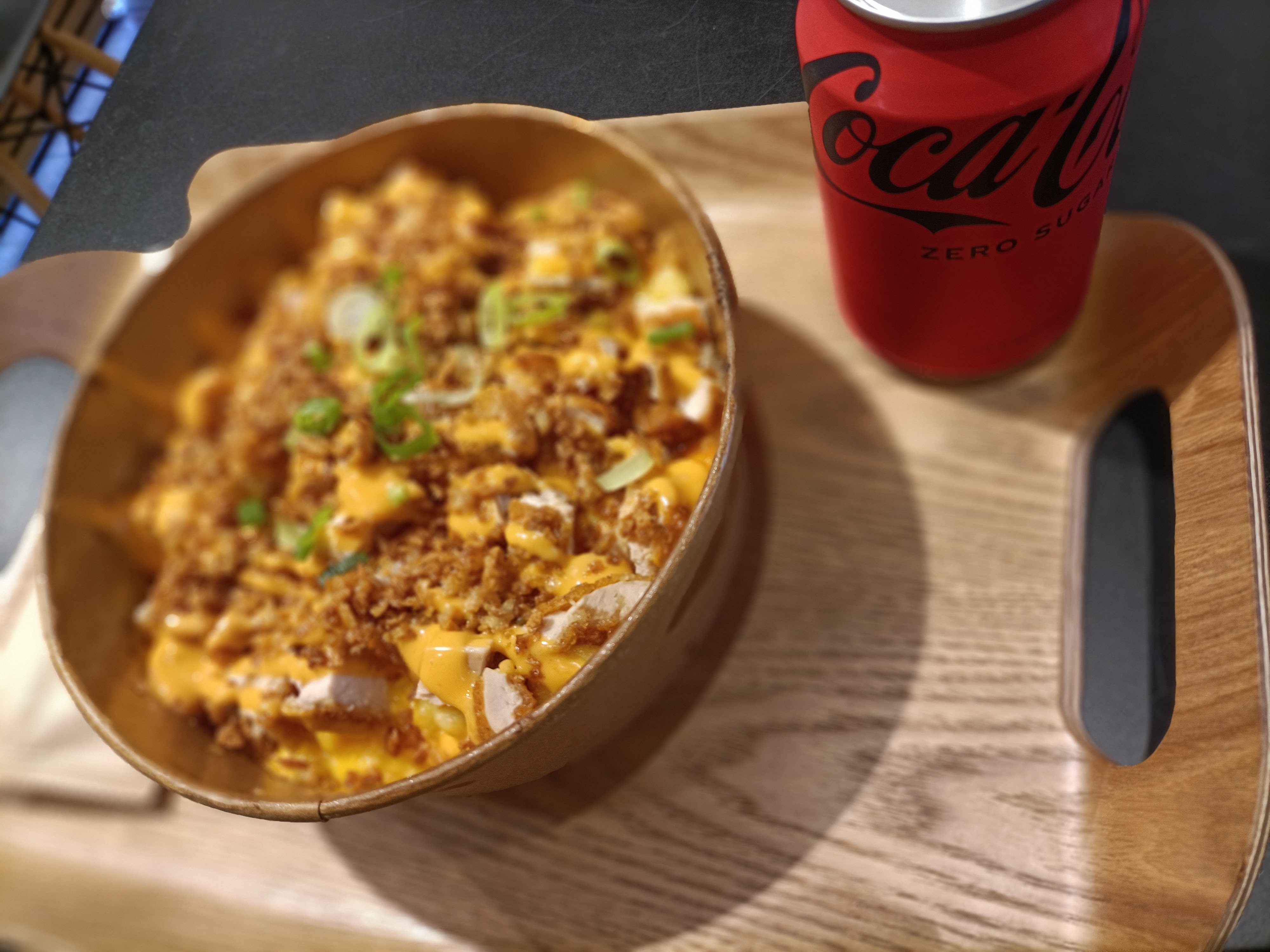 Sentiment partagé. Pas mauvais mais vachement gras et bourratif. Je ne m'attendais pas à un résultat aussi fast-food mais c'est de ma faute, j'aurai dû m'en douter quand on m'a demandé quelle sauce je voulais dans mon plat parmi les traditionnelles sauces barbecue/biggy burger/chili thai/mayonnaise.... Personnellement je pense que c'est inutile à moins que vous vouliez absolument rajouter du gras au gras. J'ai gouté le plat Tokyo avec un poulet façon teriyaki mais c'était simplement un tender classique sans saveur particulière qui était posé sur la base de fromage aux pates. Concernant le plat à base de crevettes de mon camarade, il avait l'air appétissant mais il était déçu de se retrouver qu'avec 3 pauvres crevettes sans saveur particulières d'après ses dires. Pour en revenir à la base du plat, je m'attendais à un fromage plus savoureux. Cependant, compte tenu du fait qu'il s'agisse d'un fast-food, ça serait malhonnête de leur en tenir rigueur. Mais c'est aussi là que le bât blesse : ça fait cher pour un fast-food, surtout quand on vous rajoute un supplément de 0,50€ parce que j'ai choisi une cannette plus chère sans le savoir (je n'ai reçu aucune indication jusqu'à ce que je m'en rende compte sur la note) En définitif, c'est une adresse à tenter pour ceux qui recherchent de la nouveauté en terme de fast-food bien fat avec fromage fondu et qui n'ont pas peur de payer plus cher que les fast-food traditionnels. Pour les autres, comme moi, vous ressortirez avec un sentiment partagé et le ventre lourd.