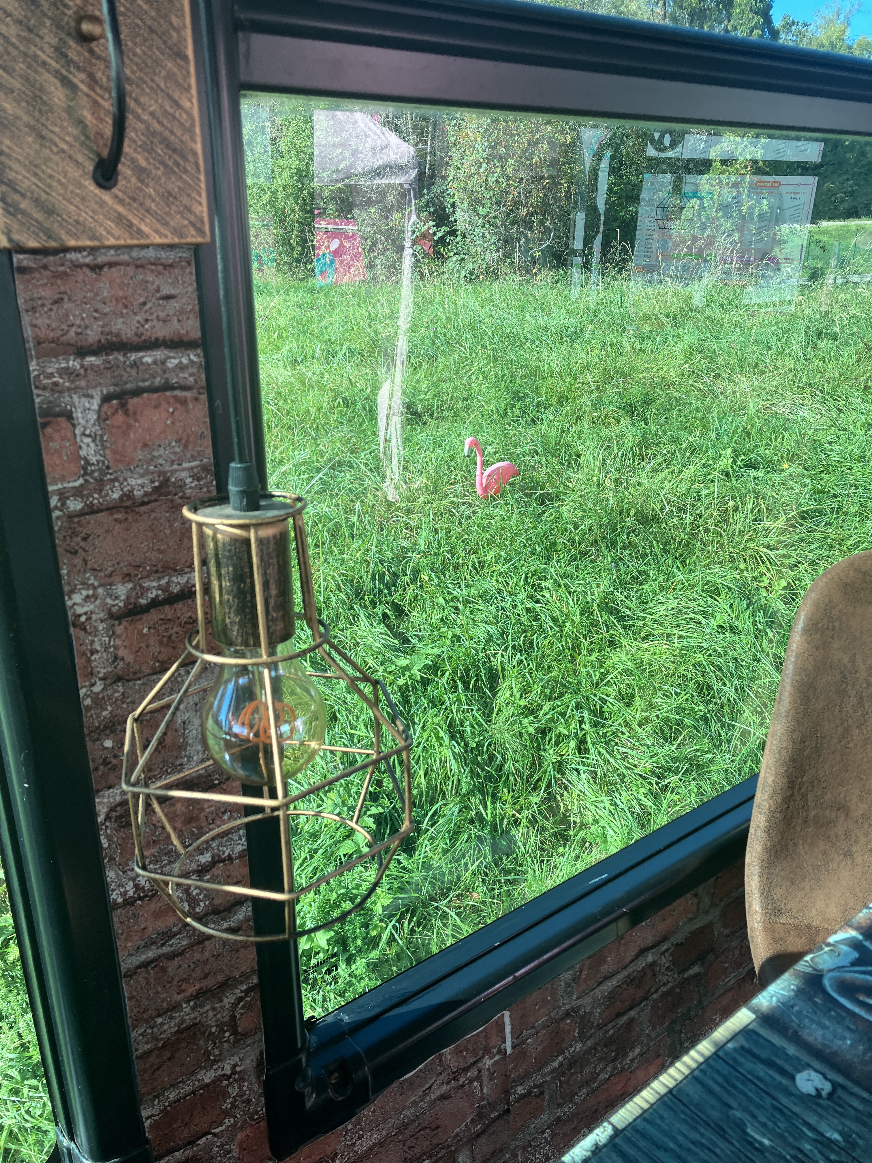 Une pause déjeuner vraiment chouette, autour d'un bus-cuisine rose tenu par une équipe adorable et attentionnée. Une carte de fast-food améliorée à coup de fromage du coin, des frites fraîches, un service aux petits soins. Ça valait carrément le coup de quitter l'autoroute !