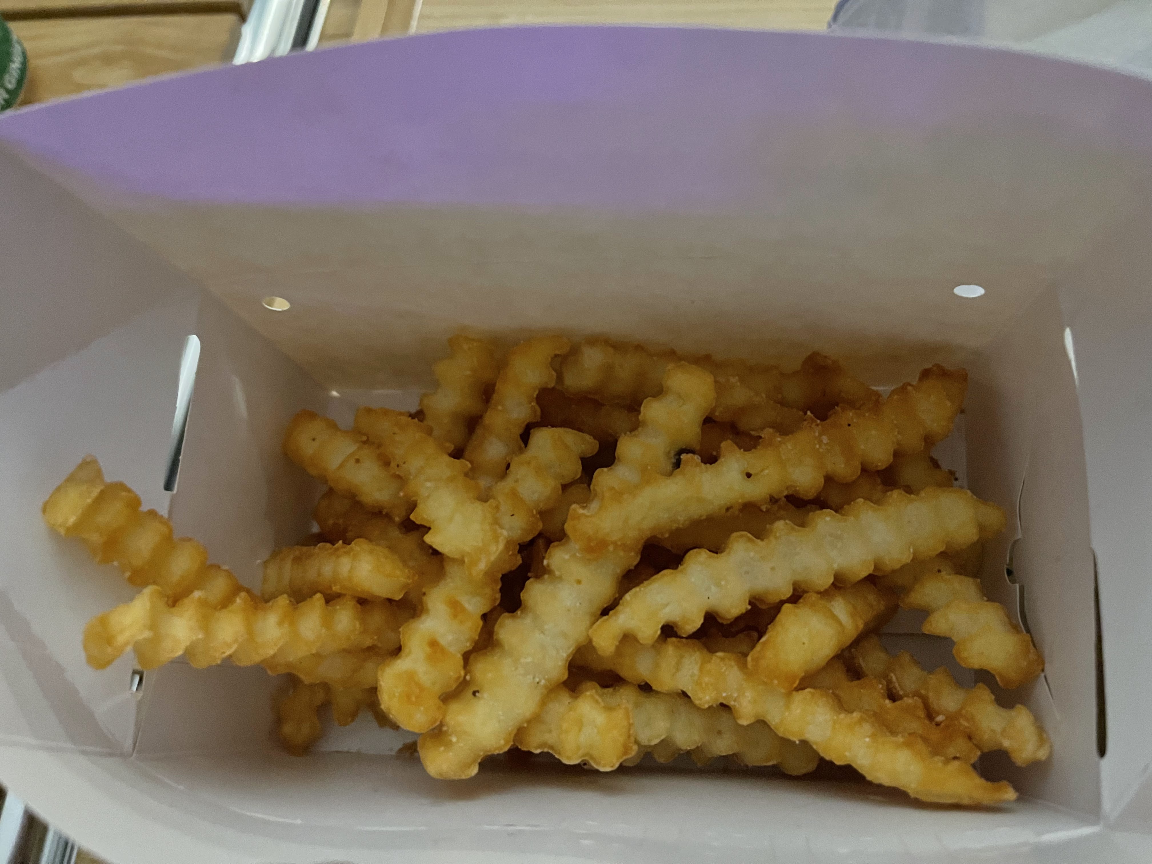 étonnamment très bon ! Je suis américain et je rendais visite à un autre ami américain qui vit à Orléans et qui m'a dit que c'était un super petit endroit. C'était à la hauteur de sa recommandation. Les frites ondulées sont si savoureuses et les pop au poulet ressemblent un peu aux nuggets de poulet de Wendy's. Les boules de macaroni au fromage étaient également savoureuses. Je le recommande vivement si vous voulez du fast food américain bien plus délicieux que McDonald's !