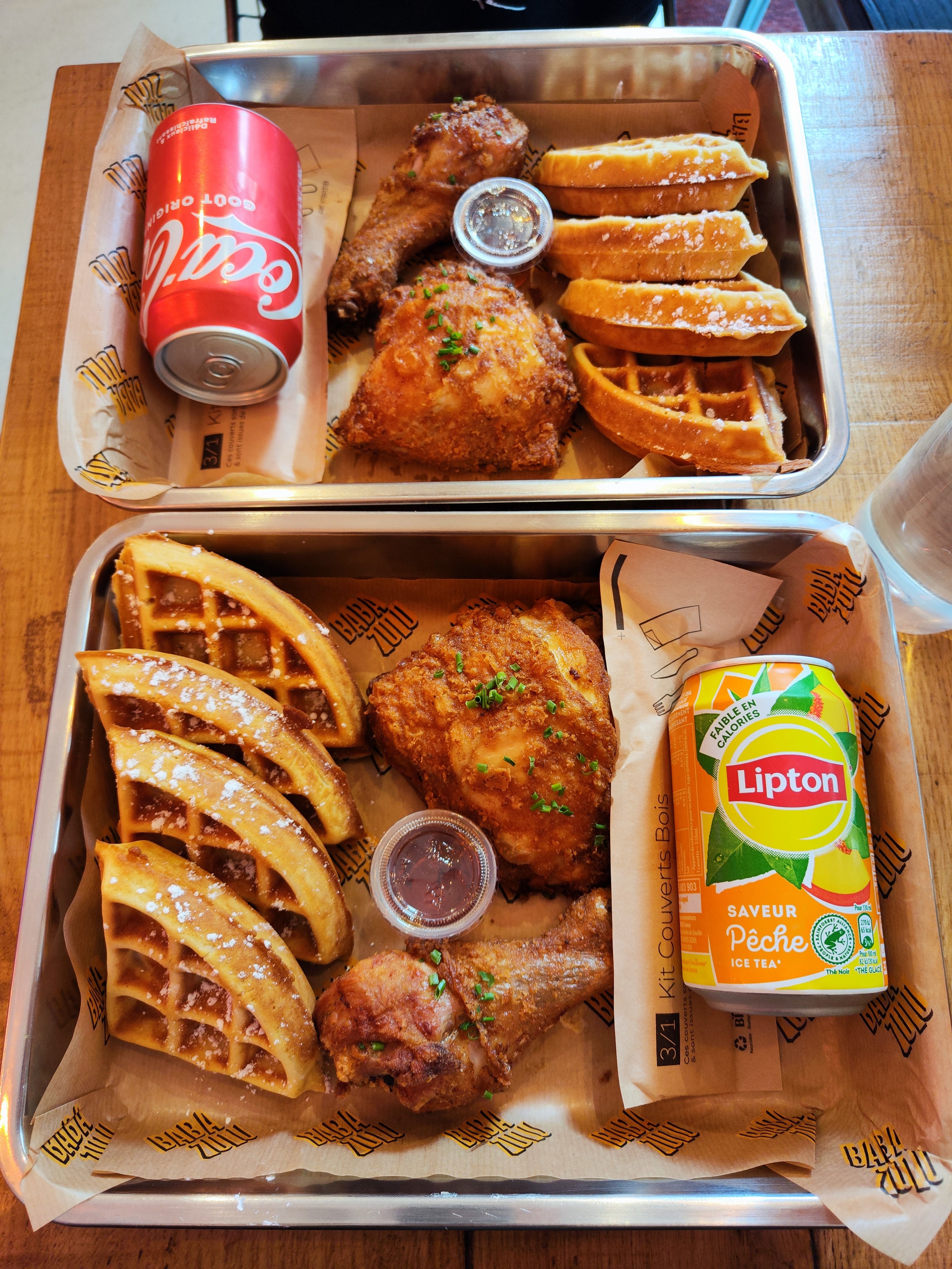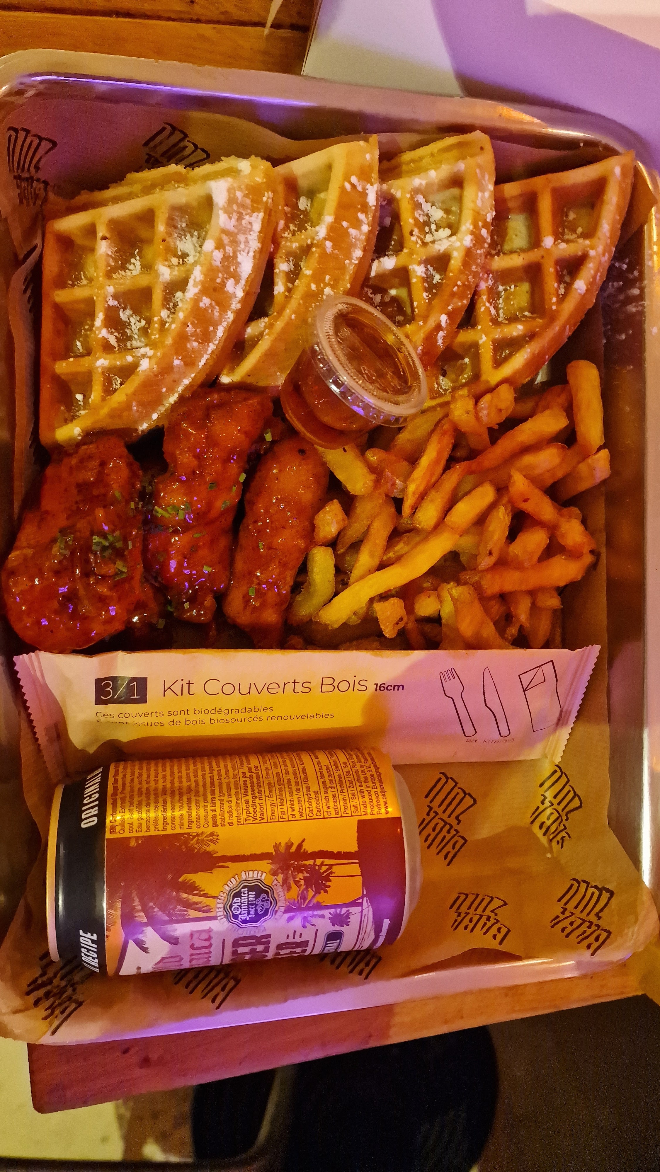 J’ai super bien aimé leurs waffles sont très bonnes !! Le poulet il est croustillant comme jamais !!!! 😍 Par contre impossible à finir je prends toujours le reste à emporter tellement c’est généreux