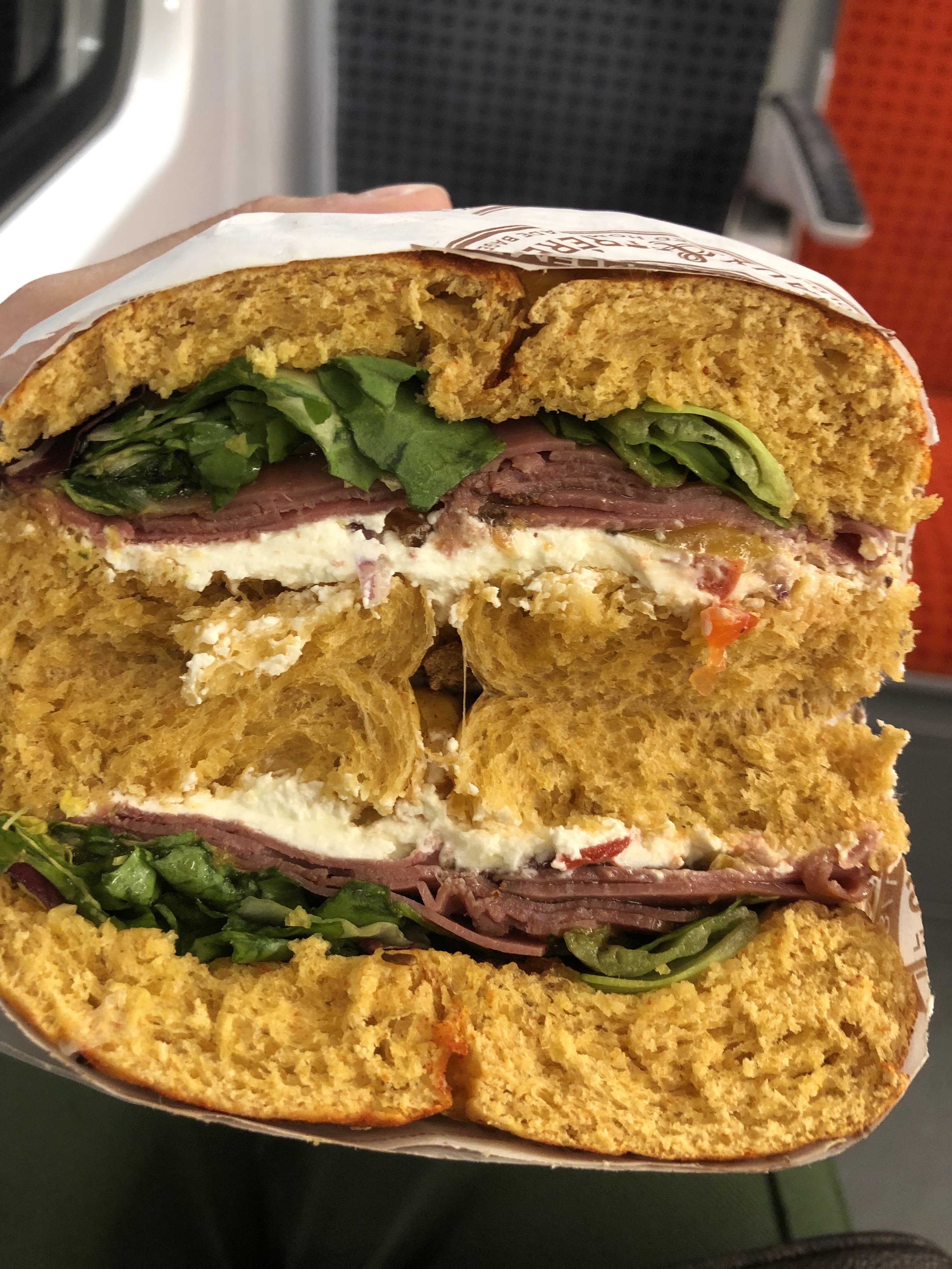 Endroit idéal si vous voyagez avec votre chien et que vous voulez lui payer un menu à 12€ à la place de ses croquettes. Par contre, si vous êtes un humain, je vous déconseille cet endroit car la nourriture qui y est servie n’est pas faite pour vous. Je m’explique : deux bagels au bœuf à 12€/pièce achetés. En déballant notre commande, les morceaux de bœufs si bien présentés sur la photo de démonstration s’apparentaient à de la pâtée pour chien et l’odeur n’a fait que renforcer cette impression. Il a suffi d’une bouchée constater que c’était infecte (et froid par la même occasion) et pour décider de jeter ces atrocités (24€ pour deux) à la poubelle. En résumé: temps perdu dans la file d’attente, argent perdu et jeté à la poubelle, et de nouveau temps perdu pour commander un nouveau repas dans un autre établissement.