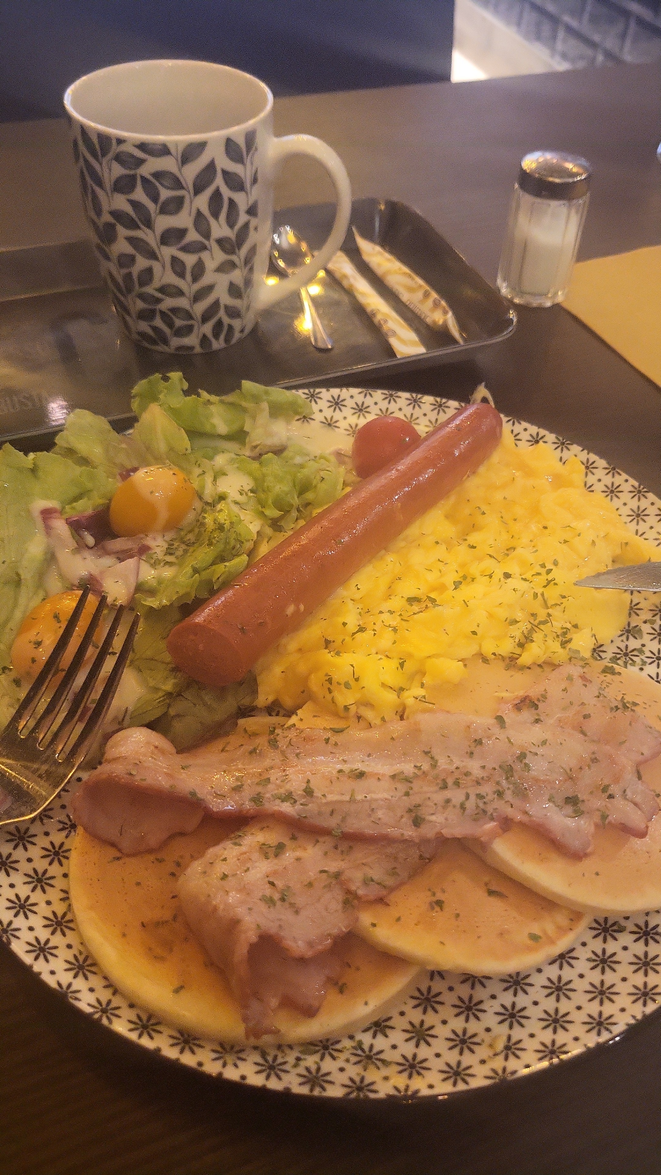 Je reste sur ma faim malgré la quantité du plat... Nous avons commandé des pancakes salés nordique et américain. Il y a 3 excellents pancake dans chaque assiette mais malheureusement les garnitures manquent de générosité. En fait comme j'ai indiqué au cuisiner, 2 pancakes auraient suffit mais avec un peu plus de garniture par exemple plus de salade de la tomate par exemple, une petite saucisse de poulet à peine 3cm sur 0.8cm de circonférence... eh oui j'ai mesuré car j'ai ma trousse d'écolier avec moi 😜 l'assiette américaine manque aussi de sauce, 3 petites fines lamelles de lard sur les pancakes avec la petite saucisse pour 17€ c'est un peu cher. Je comprends qu'il y a l'inflation mais les salaires n'augmentent pas autant bref... J'espère voir le changement suite à ce commentaire 🙏🙏🙏☺️