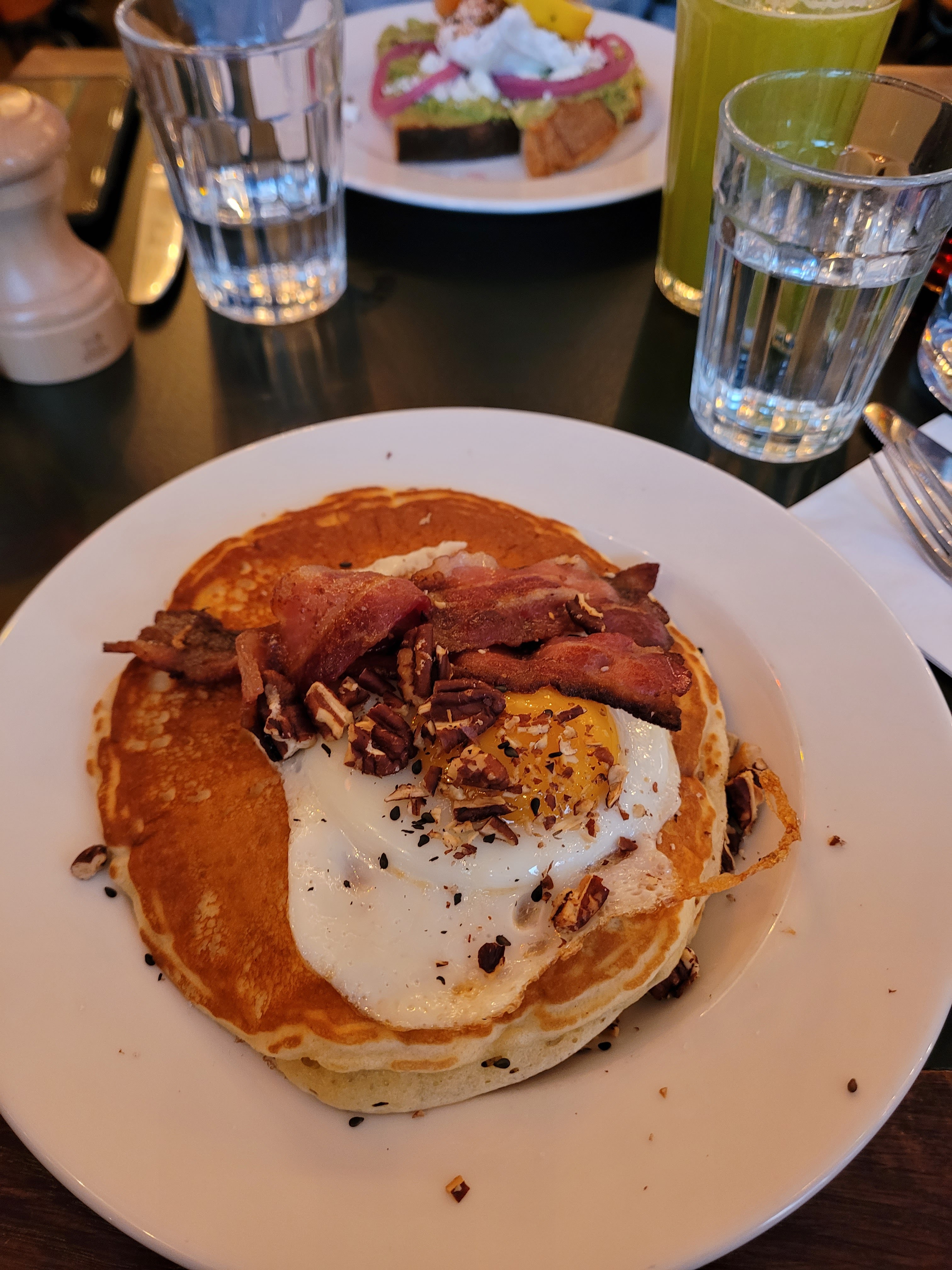 Super ambiance et localisation. Mais les quantités (l’avocado toast/les pancakes) ne sont pas acceptables pour le prix! Nous l’avons d’ailleurs dit au serveur qui était très sympa et navré pour nous. Il nous a proposé des frites mais ça n’est pas à la hauteur de la note!