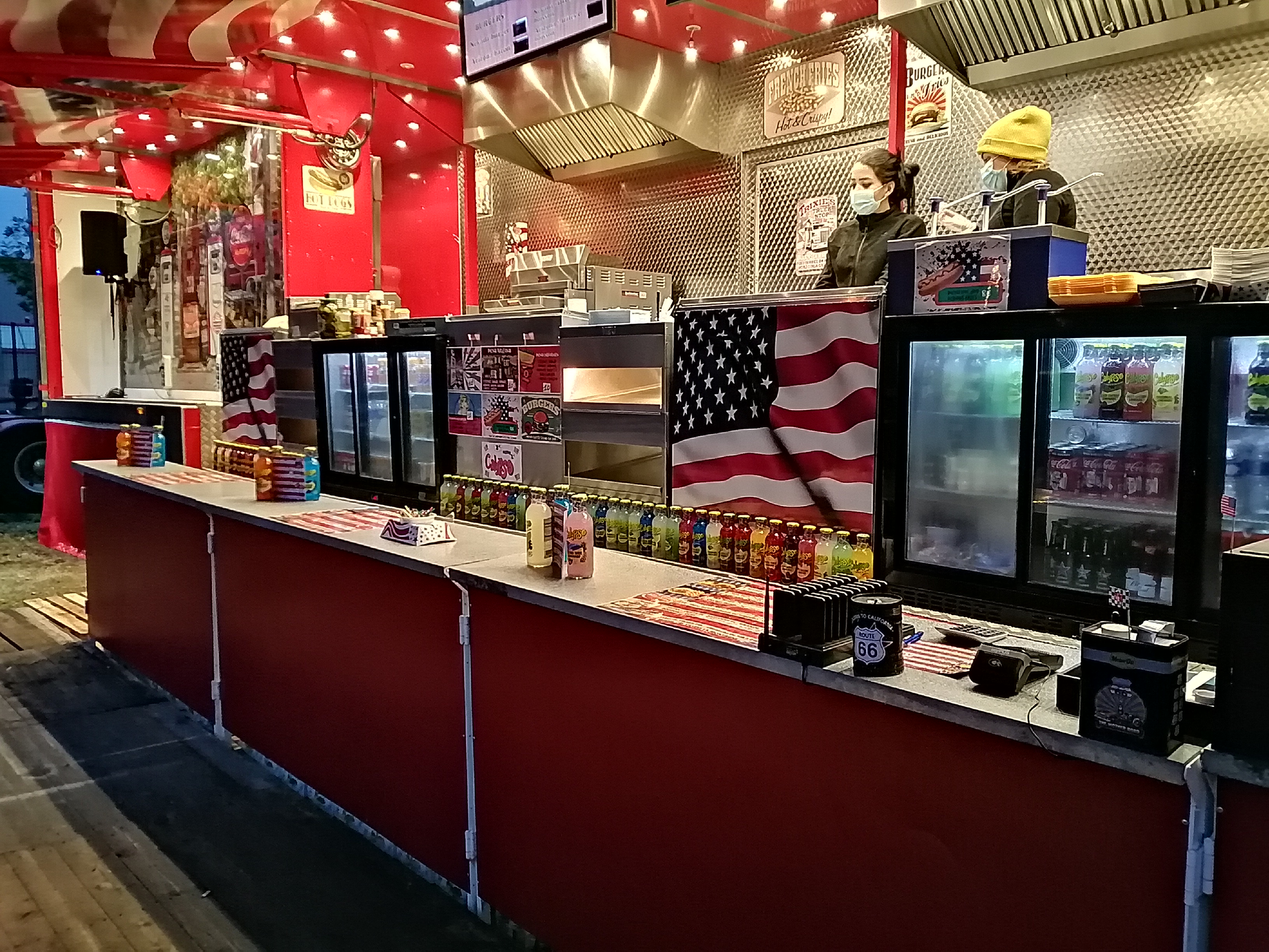 Accueil bien sympathique , une bonne ambiance, agréable à manger sur place . En revanche peu de choix ( 4 menus ) et la qualité des aliments medium qu'on peu retrouver ailleurs. Hormis la musique camion etc... je ne trouve rien style américain dans mon box à kebab ce qui ai bien dommage. Niveau hygiène cheveux retrouver dans les frites ...