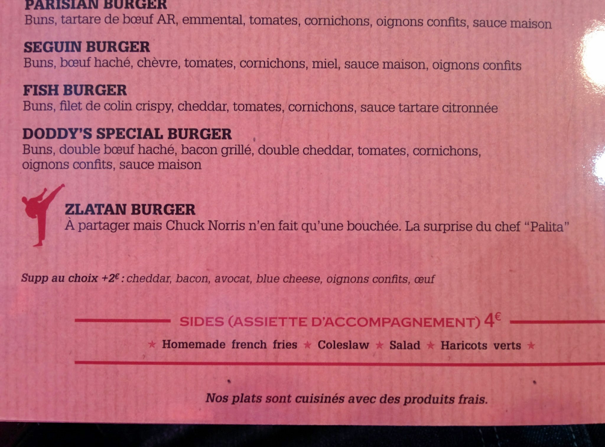 Bon spot pour manger un burger. Pour les grosses faims, il y a le Zlatan burger !
