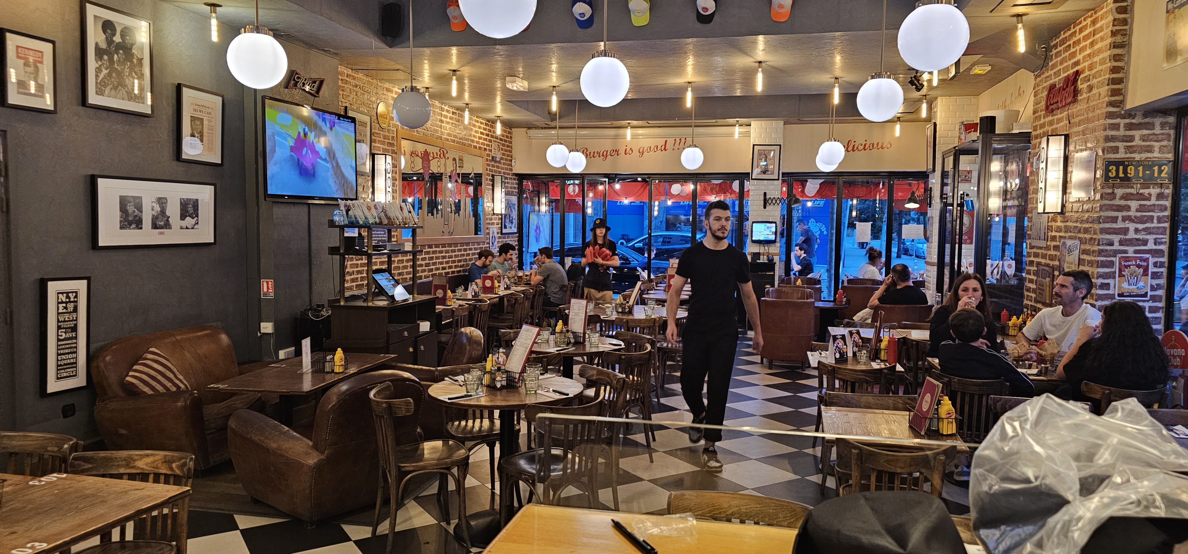 Ambiance américaine réussie que ça soit dans la décoration ou dans l'assiette. Tous les classiques US sont là ! Burger, bagel, hot dogs et grandes salades. Attention, réservez pour la terrasse quand il fait beau (sortie de bureau) et pour la salle le dimanche (beaucoup de familles). Service amicale, sans prise de tête mais efficace. Ça reste un peu cher mais pour le quartier, on est dans les prix... Bref allez-y !