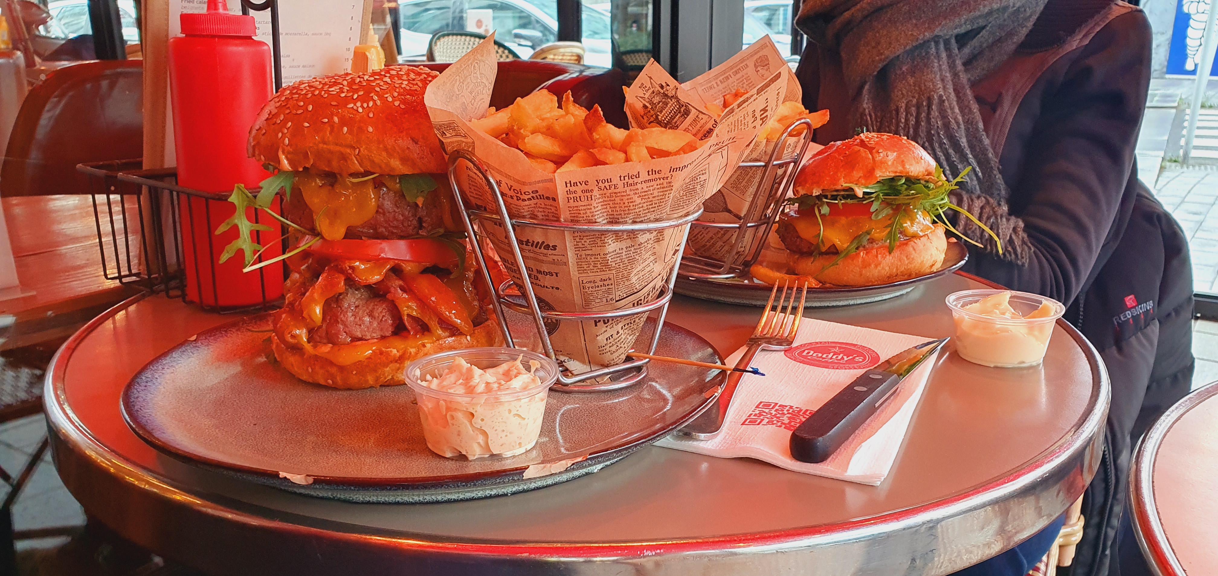 Burgers bons et copieux, très bonnes salades, patron et barman sympa, mais alors pourquoi 1 seule étoile. Ma note est sévère pour une raison : nous sommes extrêmement mal reçu depuis quelques semaines, la présence d'un nouveau serveur nous insupporte au plus haut point (vous le reconnaitrez à son port du chapeau et son air fanfaron). Il est irrespectueux avec le client, la dernière en date : tentative de drague de ma compagne lorsque je suis allé aux toilettes ! et je passe les absences de bonjour/merci… Ce serveur s'est vite forgé une mauvaise réputation, nos voisins, pratiquant le Doddy's ont également eu affaire aux mauvaises manières du jeune homme. Vraiment dommage car le reste du personnel est charmant. Pour l'heure nous avons décidé d'aller tester les autres burgers du quartier.