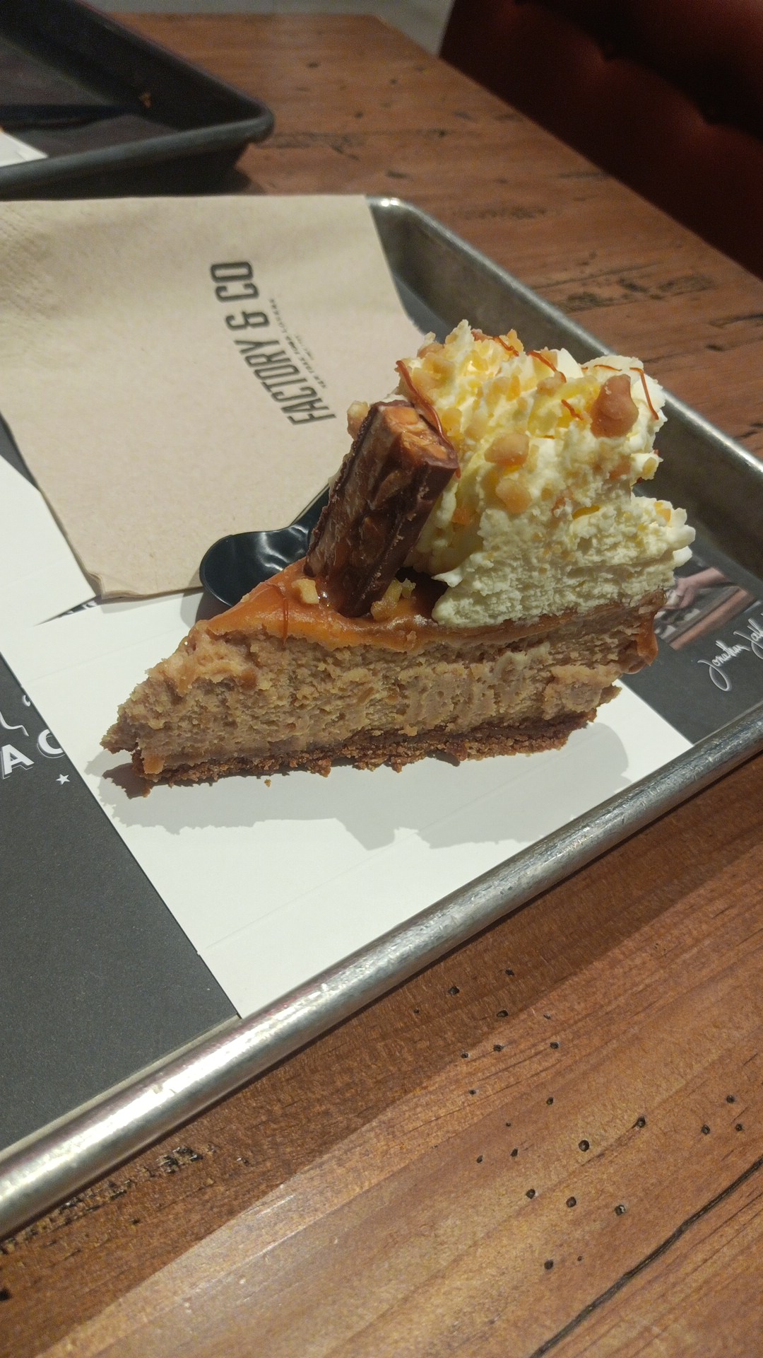 En résumé, les desserts ont été pour moi une déception majeure. Les desserts mentionnés dans mon avis étant les seuls produits que j'ai goûté, je repasserai probablement à la fabrique pour tester les plats salés et me faire un avis plus global des produits proposés dans cette fabrique (dans ce cas, je compléterai mon avis et modifierai ma note si les plats sont à la hauteur de mes attentes). Accueil et service Globalement l'accueil était bon, les employés ont fait leur maximum pour nous servir dans de bonne condition, la fabrique était propre, rien à redire sur ce point. Desserts J'ai fortement apprécié le fait que les desserts ne sont pas trop sucrés. C'est le seul point positif que je peux mentionner sur les desserts goûtés. Cheesecakes Les cheese cakes que j'ai goûté était les suivants : Oreo, K. Bueno, snickers. La crème est extrêmement dense mais sans goût particulier. Le biscuit en bas était humide. J'ai vraiment eu du mal à terminer les quelques bouchées de cheesecake mangées car j'ai été écoeuré (nous étions plusieurs et nous avons et la même sensation). Une grande partie est allé à la poubelle... Je ne connais pas les vrais cheese cake New Yorkais (je comptais les découvrir dans cette fabrique) mais après avoir goûté ceux là, je sais que je n'en rachèterai pas. De plus, les prix sont élevés : 6,90€ la part de cheesecake !! (pour le même prix, j'ai déjà dégusté des pâtisseries fines, bien travaillées et pas écœurantes ...). Muffin Kinder Le muffin Kinder a été pour moi une vrai blague... En complément des deux carrés de Kinder posés sur le muffin, je m'attendais à avoir un muffin abondamment fourré au centre... Je n'ai trouvé qu'un grand étouffe chrétien complètement sec (échec de fourrage ?!?!). Ce qui était censé ressembler à un carré de Kinder (à l'intérieur du muffin) avait complètement fondu et s'était ratatiné, au point que je me suis demandé si quelqu'un n'avait pas manger le fourrage de ce muffin avant moi. Sérieusement, qui fourre un muffin avec un morceau de biscuit chocolaté si petit qu'il fondra complètement après cuisson en laissant un résidu de biscuit sec ?!? Même les muffins proposés au mac Do ont meilleurs texture, fourrage et goût. Au final 3/4 de ce muffin est parti à la poubelle... Le muffin s'appelle Kinder (la marque) donc pourquoi ne pas utiliser des produits de cette marque et faire une crème de Fourrage chocolat Kinder (avec des Kinder chocobon par exemple...) pour éviter de se retrouver avec le résultat désastreusement sec ?!? En résumé, ce muffin est un échec, un étouffe chrétien sans intérêt. Vous l'auriez compris, je ne recommande absolument pas les desserts mentionnés dans son avis.