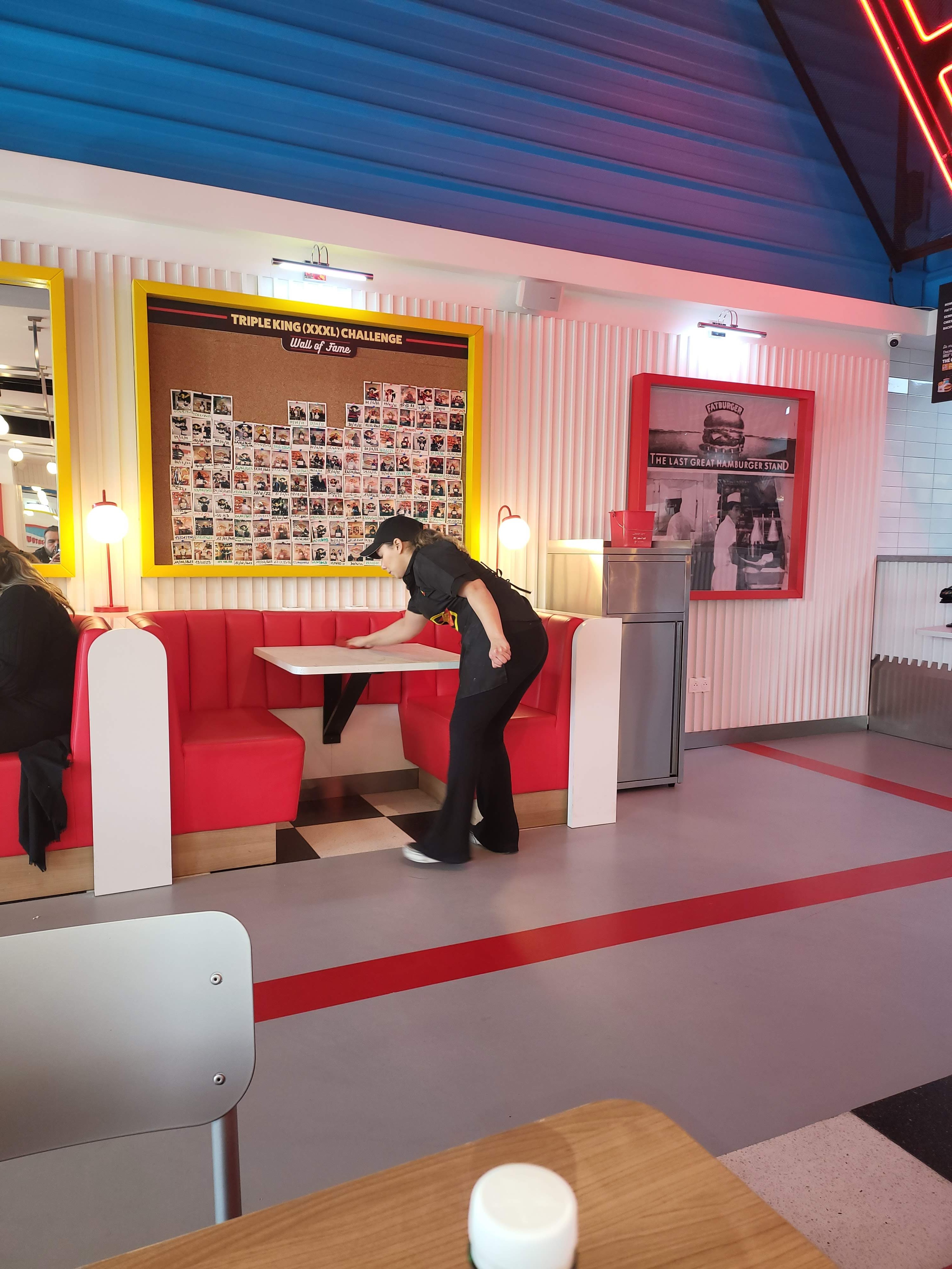 La salle est immense mais burger extrêmement décevant, goût assez spécial et frites moyennes