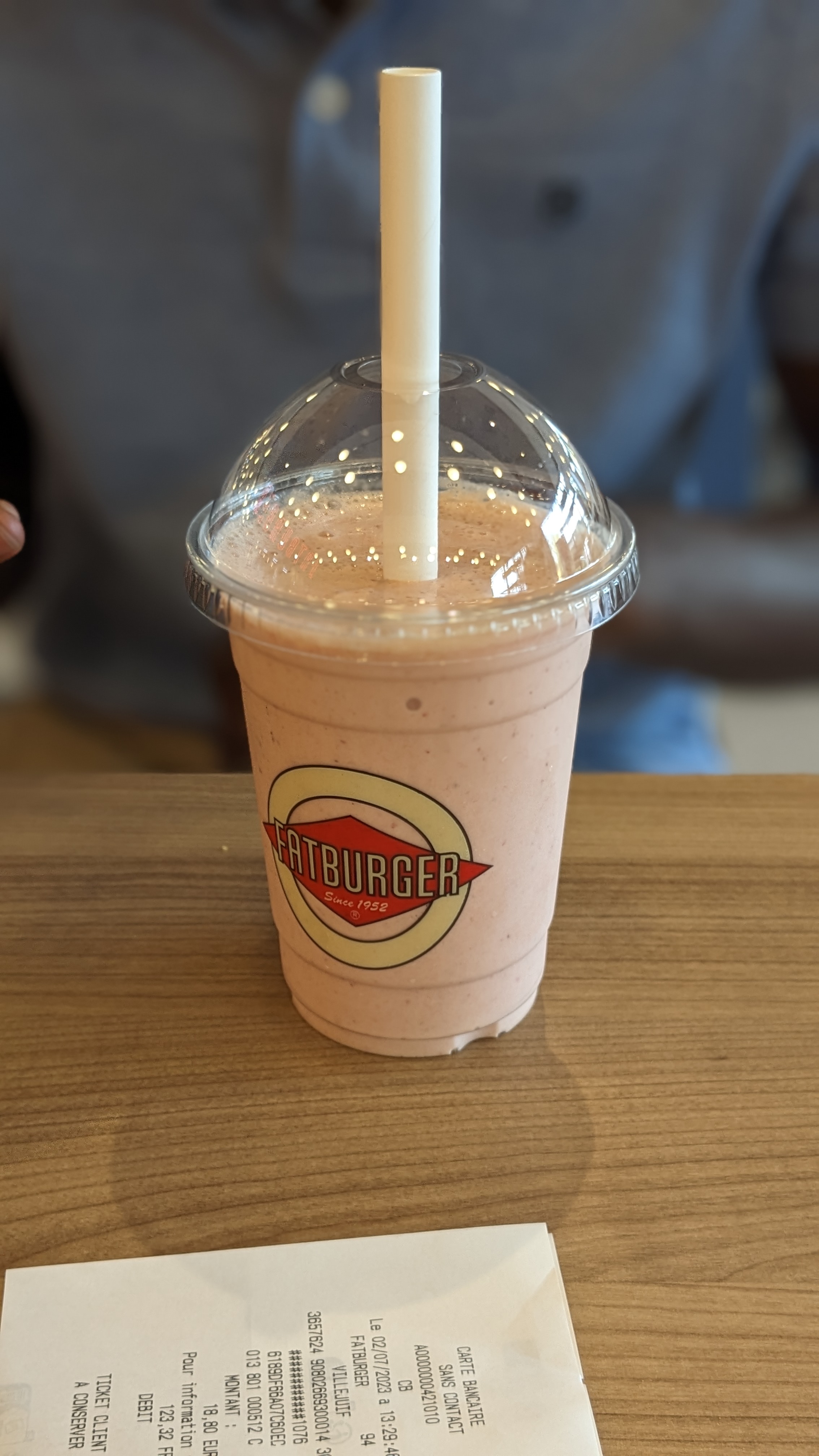 Payer mon milk-shake 6,50 € pour l’avoir dans un gobelet à Coca et j’ai demandé de la chantilly sans chantilly et en plus de ça j’ai payé à la borne mais Monsieur était au téléphone. Du coup j’étais obligé de me présenter en caisse pour lui dire que j’ai commandé un milk-shake, c’est devenu nul.