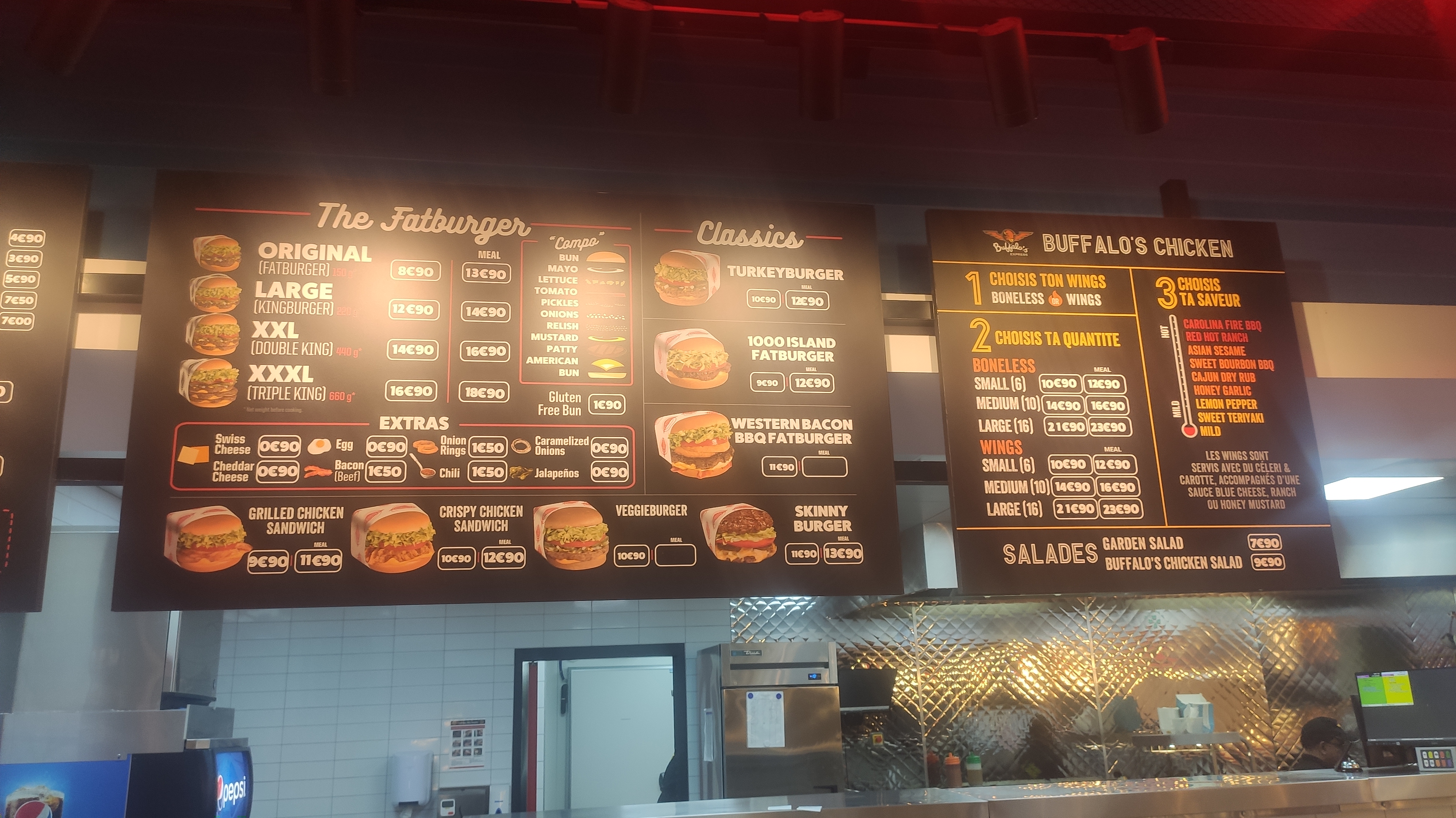 Si t’aime croquer dans de l’huile , fonce , comme son nom l’indique ; c’est FAT mais vraiment sans aucun gout et gorger d’huile .. Pire smash que j’ai manger .. Une petite etoile pour le burger au poulet pané qui etais bon .. Tres chere rapport qualiter prix