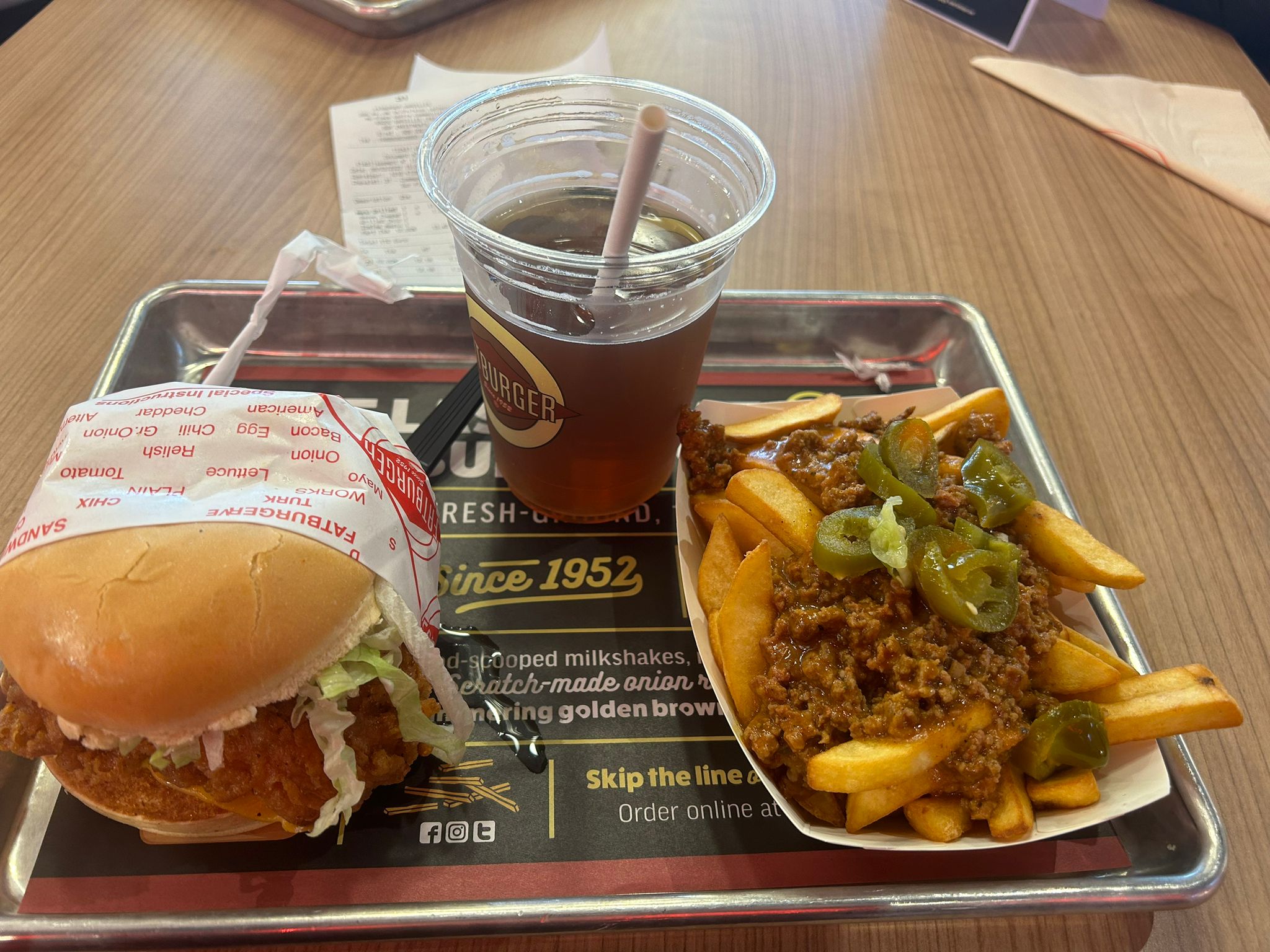 Dans la globalité un bon fast food bien que les prix soit plus chers que la moyenne ( entre 13€ et 17€ le menu ). Un goût très américain (évidemment très gras mais on pouvait s'y attendre) qui est pas trop mal mais qui casse pas trois pattes a un canard non plus. Le poulet du burger et les onion rings sont très bons. On nous a offert un petit milkshake au beurre de cacahuète qui n'était pas mauvais du tout.