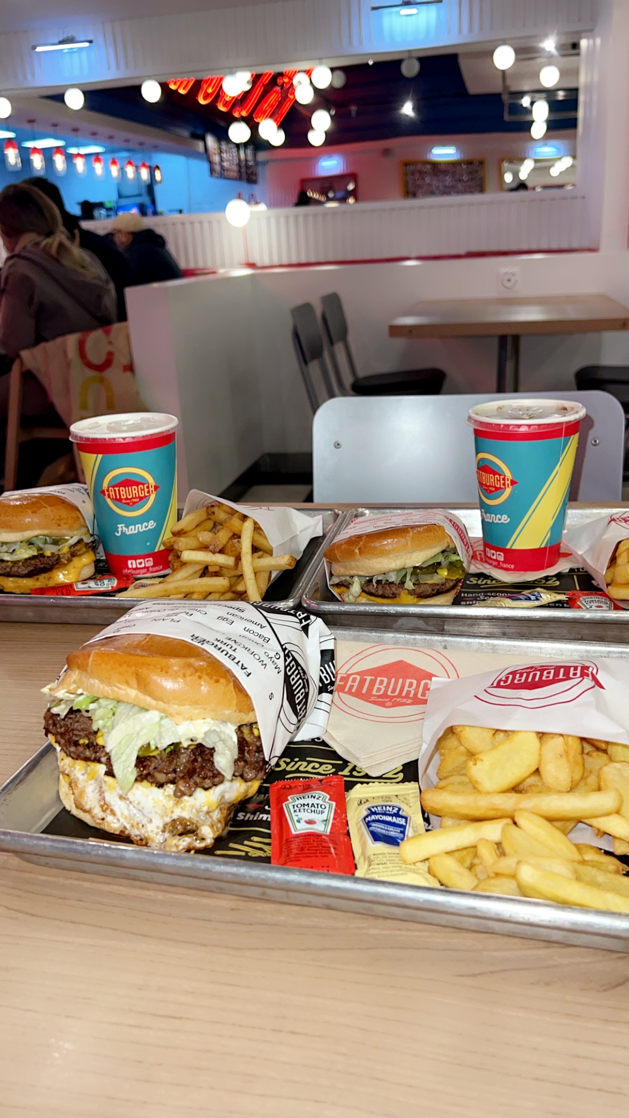 Je commence par un point très positif : le service est extrêmement efficace. On passe commande directement via une borne, et les plats arrivent à table rapidement. Le personnel est disponible, souriant et réactif, ce qui rend l'expérience agréable. Pour les burgers, j'ai eu l'occasion de goûter le Crispy Chicken et le Fatburger XXL. Les deux étaient bons : le Crispy Chicken était bien croustillant, même si j'ai légèrement senti le goût de l'huile de friture, sans que ce soit trop dérangeant. Quant au Fatburger XXL, j'ai particulièrement apprécié les morceaux de cornichon, qui ajoutaient une touche agréable. Les frites étaient également très bonnes. Le goût des steaks était correct, rien d'exceptionnel, mais satisfaisant. L'ambiance est sympa, avec une musique légère et une décoration soignée. Je vous recommande vivement le milkshake à la vanille, qui est excellent.