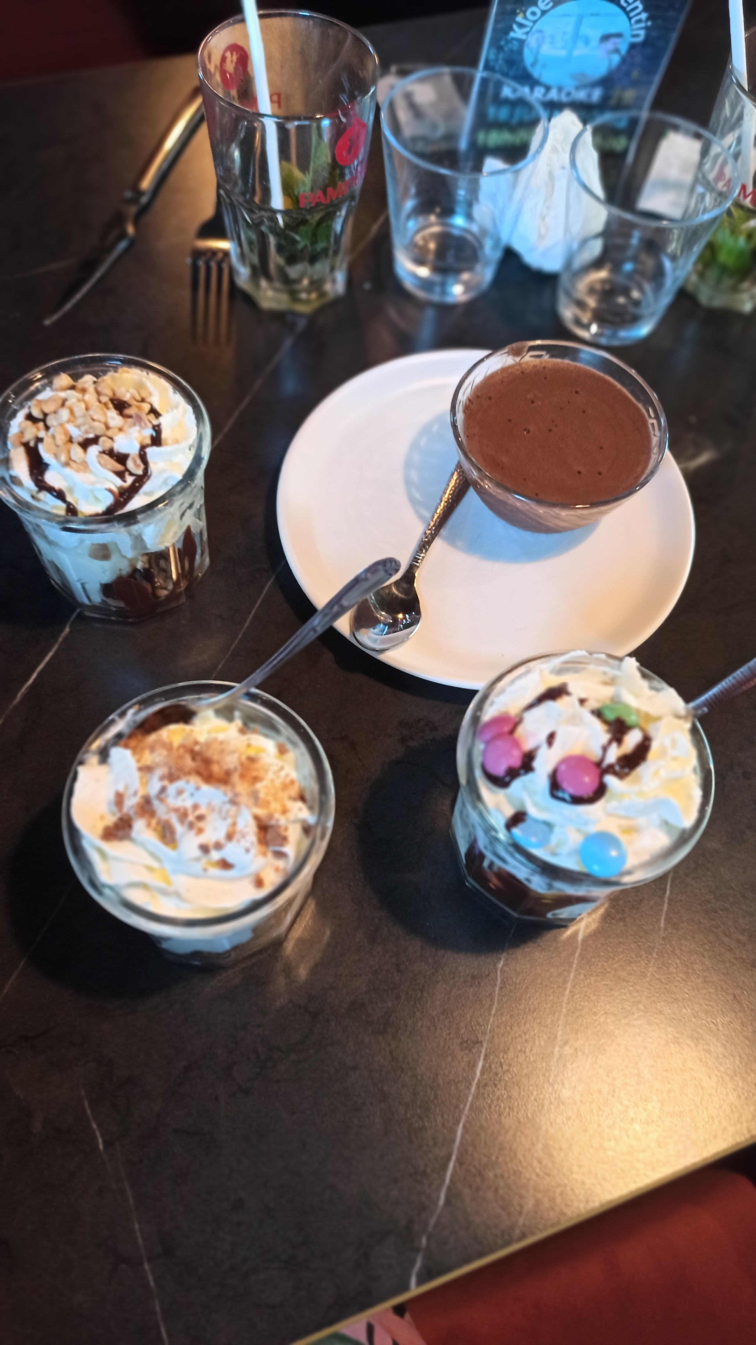 Je suis revenue ici une seconde fois avec ma fille de 7 ans, un soir de la semaine. À vrai dire nous en sommes sorties un peu déçues et n’ont mangé que la moitié de nos plats. Fish & Chips pour moi, Pâtes Carbonara (menu enfants). Beaucoup plus de chapelure que du poisson, bien gras (ressemble plus à un produit transformé de basse qualité), frites peu alléchantes. Pâtes carbonara n’ont pas fait succès non plus. La mini mousse chocolat trop sucrée (dixit ma fille de 7 ans). Elle l’a laissée de côté à peine commencé).
