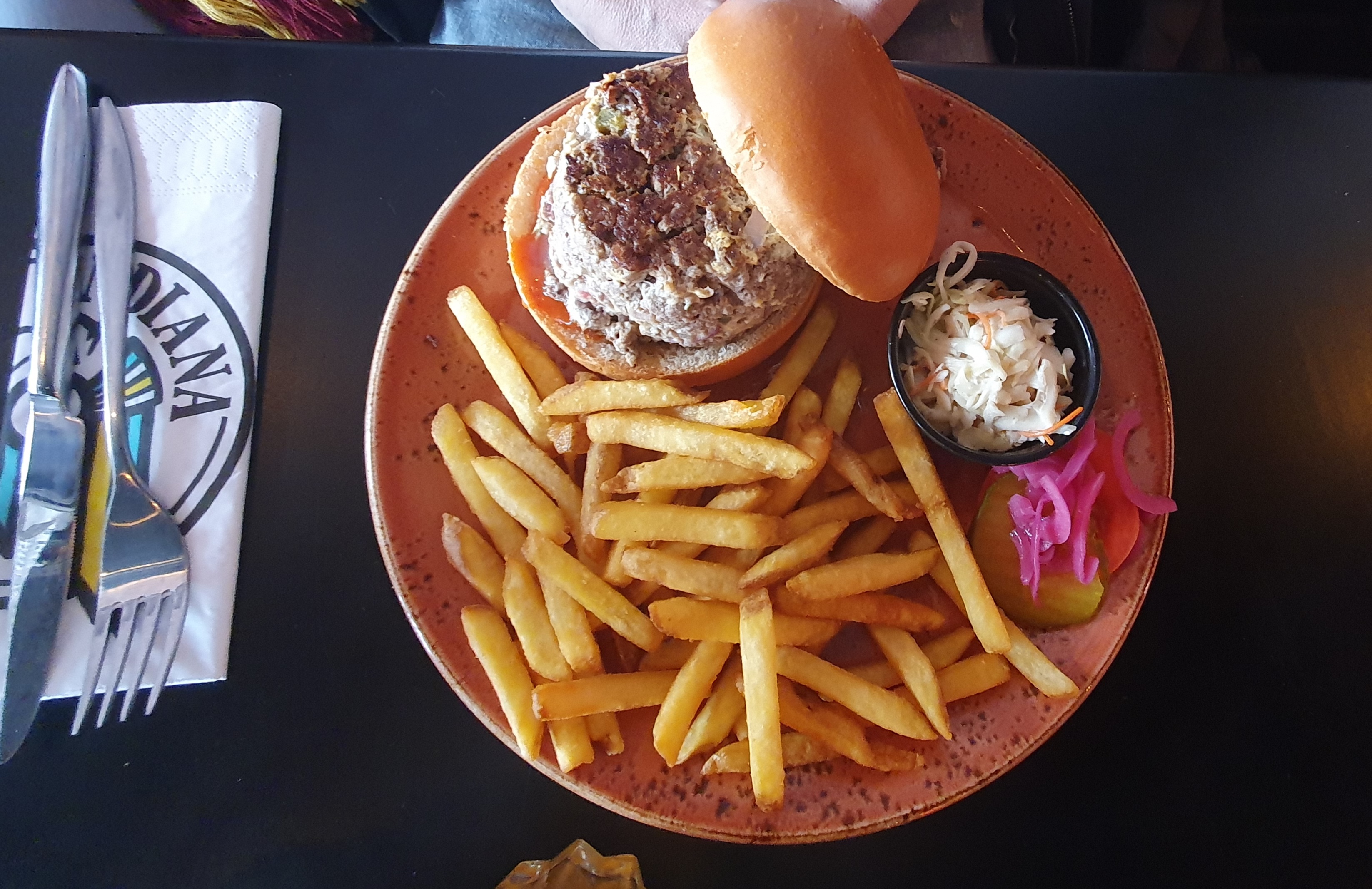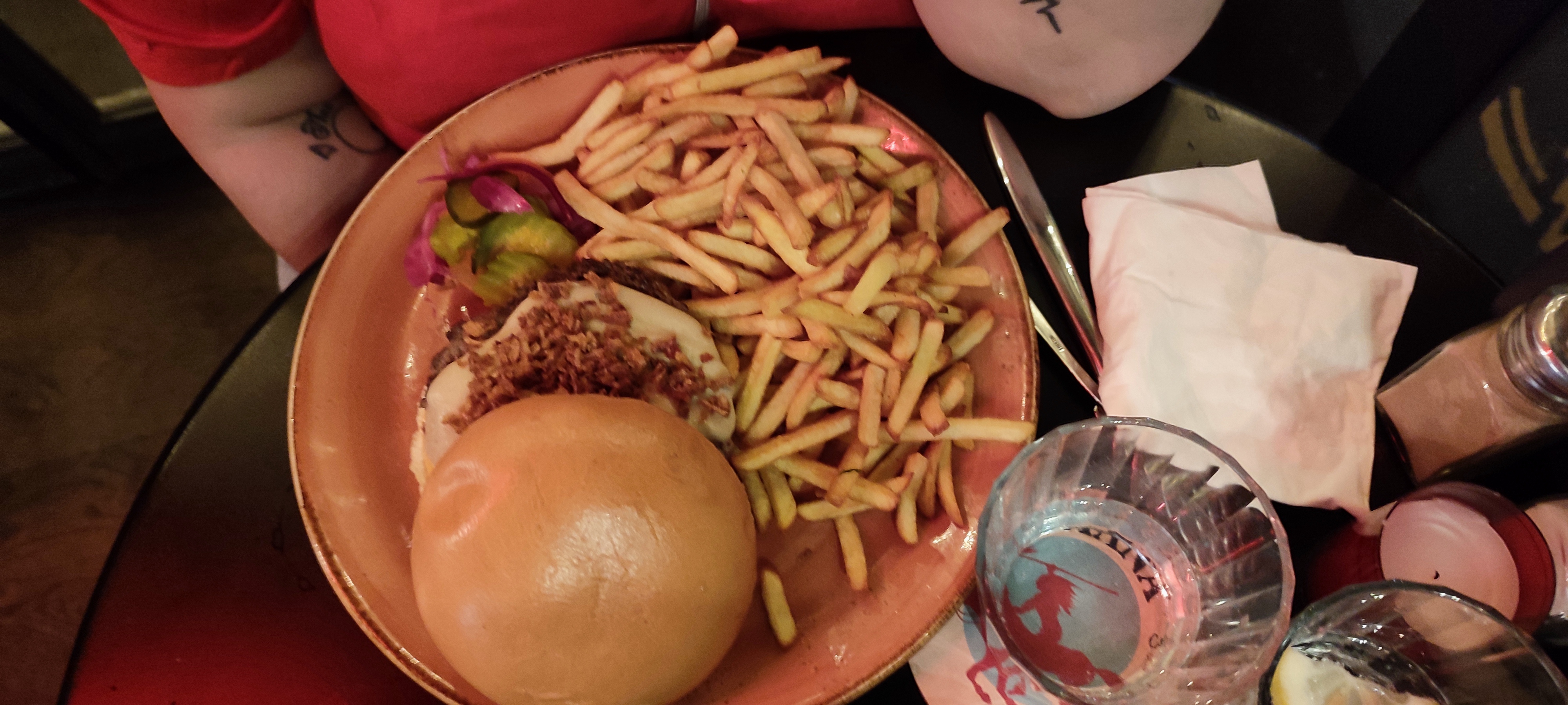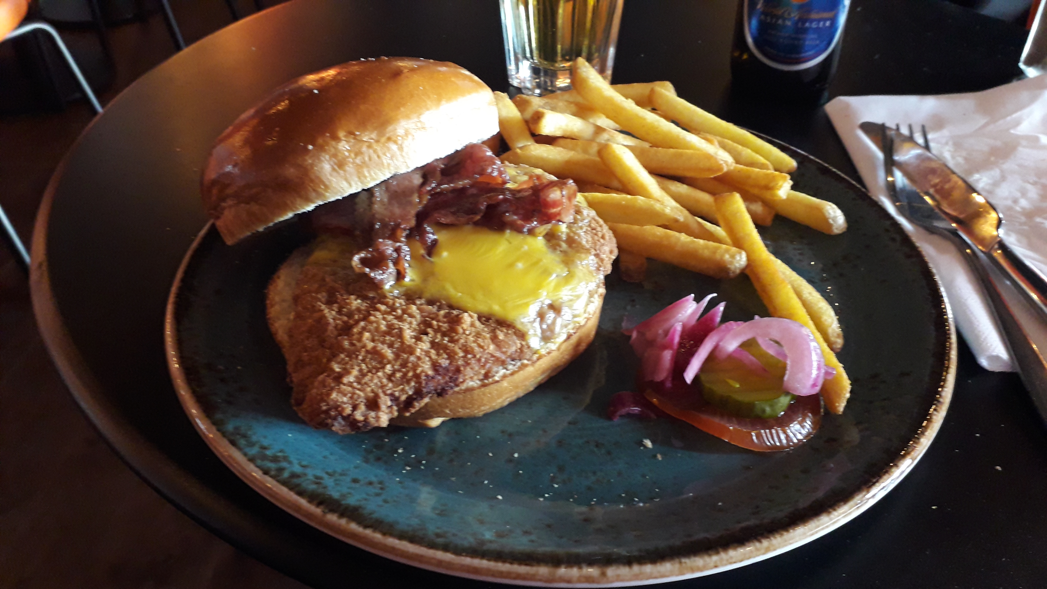 Bacon cheeseburger très bon et généreux en bacon (bien grillé). Blue cheeseburger très bon aussi. Les deux burgers étaient peu garnis en fromage malheureusement, et la viande cuite un peu moins que demande (entre deux saignant-à point au lieu de à point). Mise à part, les buns étaient très moelleux et bons, le steack avait bon goût et les frites sont craquantes a l'extérieur et fondantes a l'intérieur ! Les portions sont généreuses, on en est ressorti le ventre plein. Les serveurs et serveuse étaient agréables, mais le service un peu long pour l'affluence d'un dimanche midi (moitié rempli).