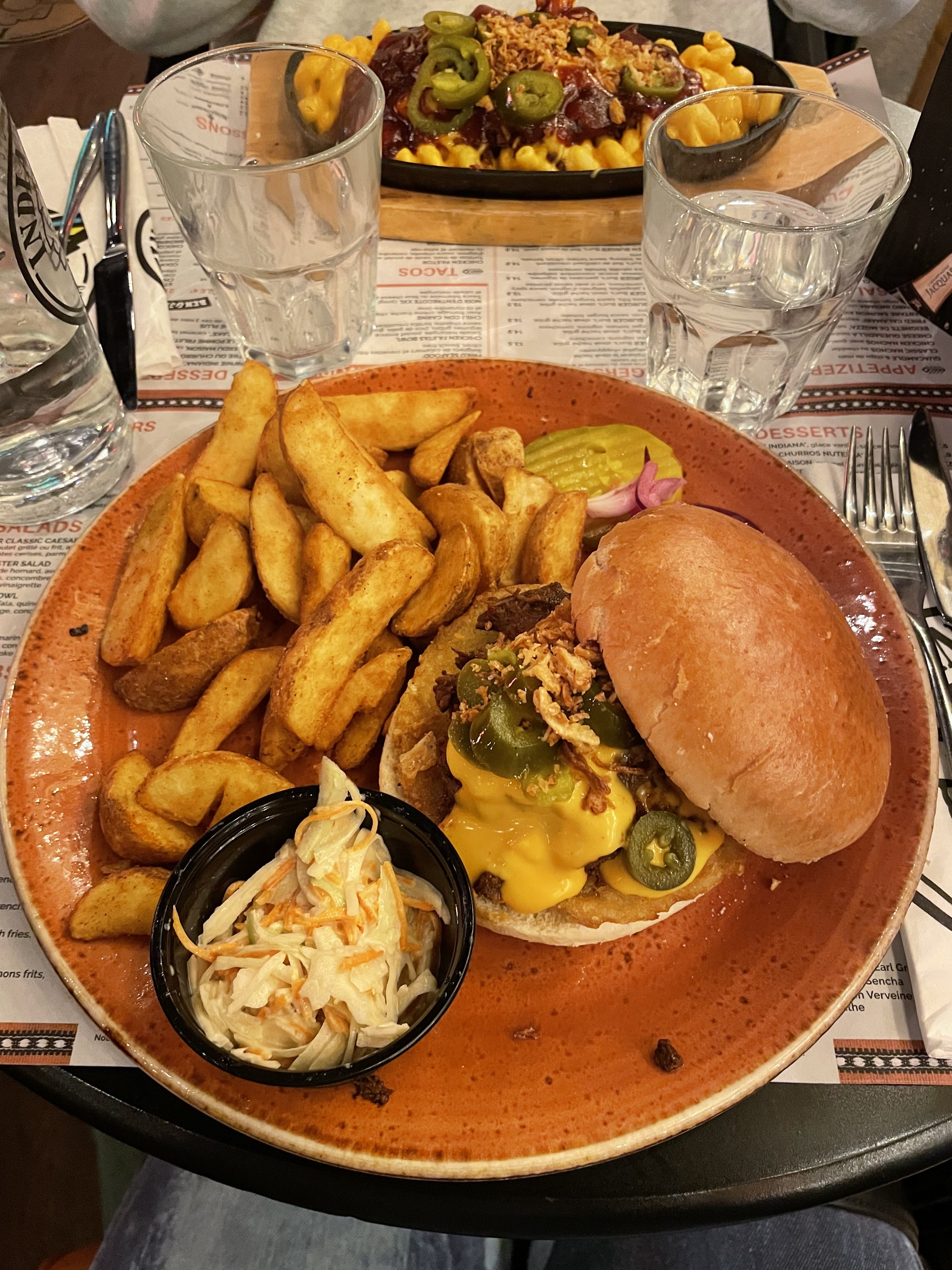 Restaurant avec une ambiance très atypique et sympathique ! Le style américain donne un côté authentique, les serveurs étaient gentils mais la longue attente de nos plats à réussi à plomber un peu le repas. En parlant des plats, ils étaient très bons (tacos au poulet réussi 👍) Je recommande