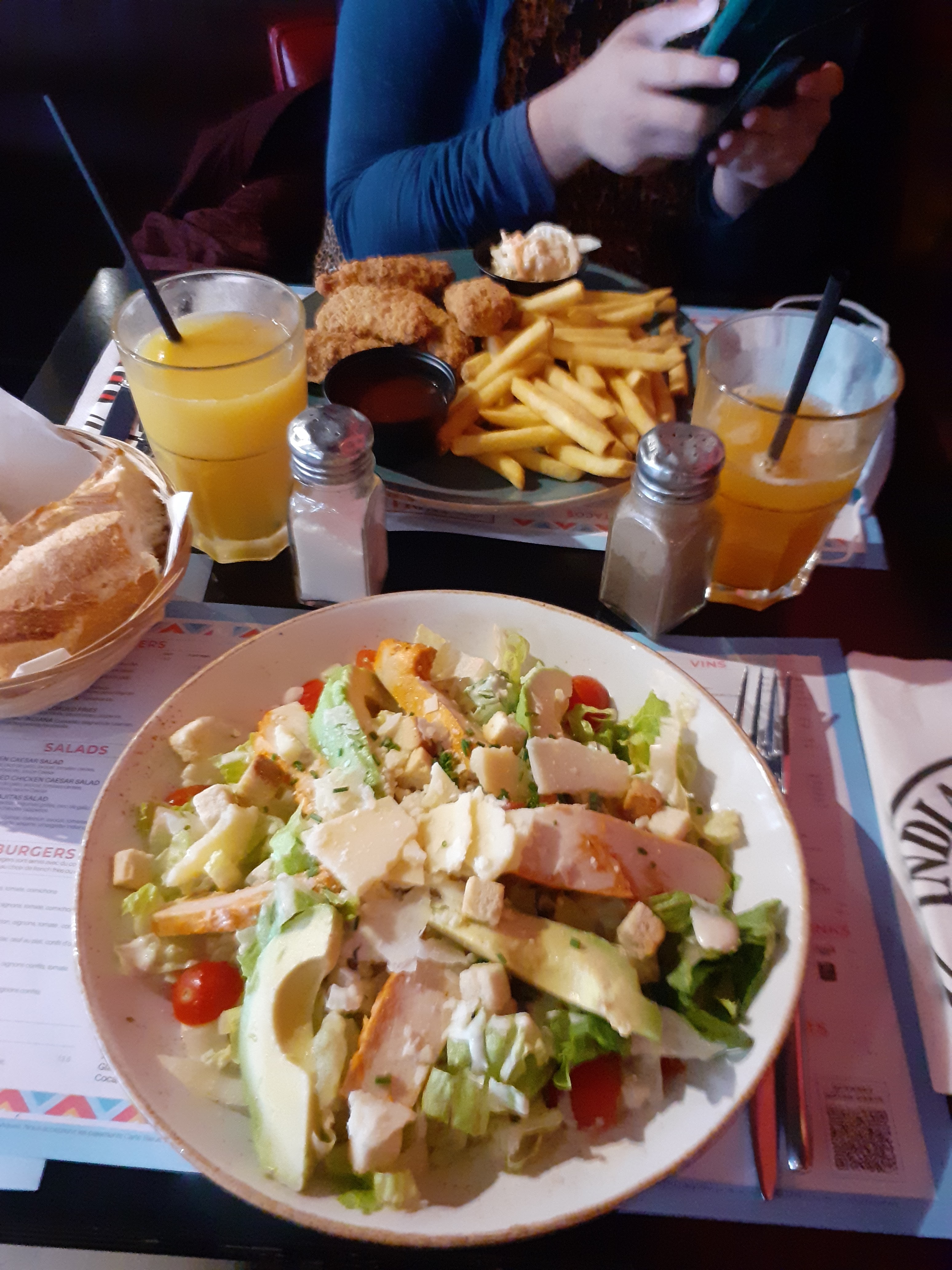 Franchise sympa et abordable, j'ai testé et approuvé la salade Chicken fajitas, elle est garnie généreusement d'avocat ! 1* en moins pour la déco obsolète de l'établissement et l'aspect un peu vieillissant quand on a testé un autre Indiana sûrement plus récent en revanche. Le pain perdu n'est pas très cher pour un restau parisien certes mais pas incroyable aussi. Le service est agréable, nous avons été pris en charge et installés dès notre entrée, les apéritifs, plats et desserts sont arrivés aussi sans trop d'attente. Je recommande !
