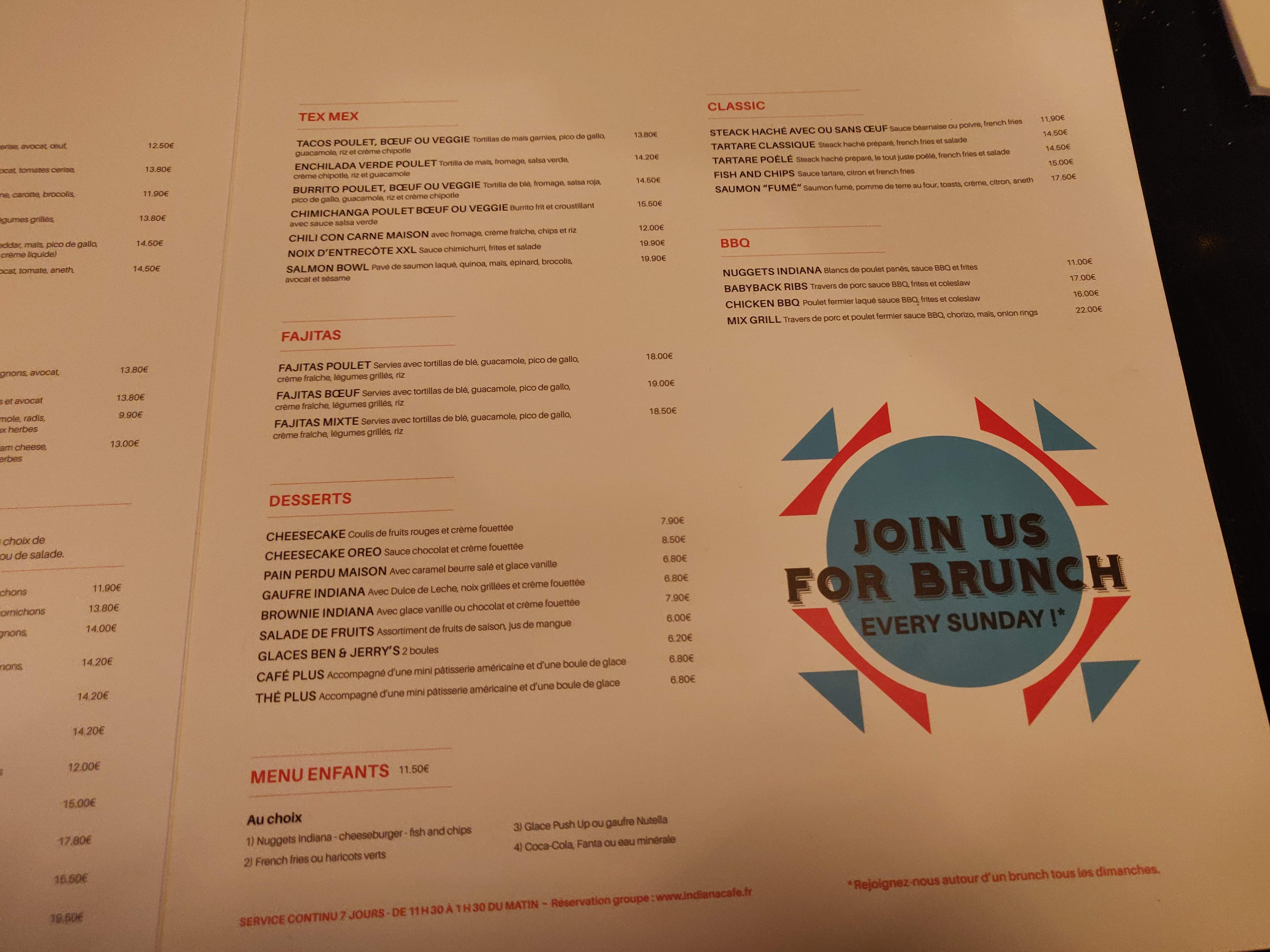 Contre toute attente, très bonne expérience à l'Indiana. Les plats proposés sont très bien cuisinés, la carte est suffisamment large pour satisfaire tout les goûts. Concernant le service, les employés sont rapides et au petit soin du client malgré que nous soyons venus en groupe. Je recommande !