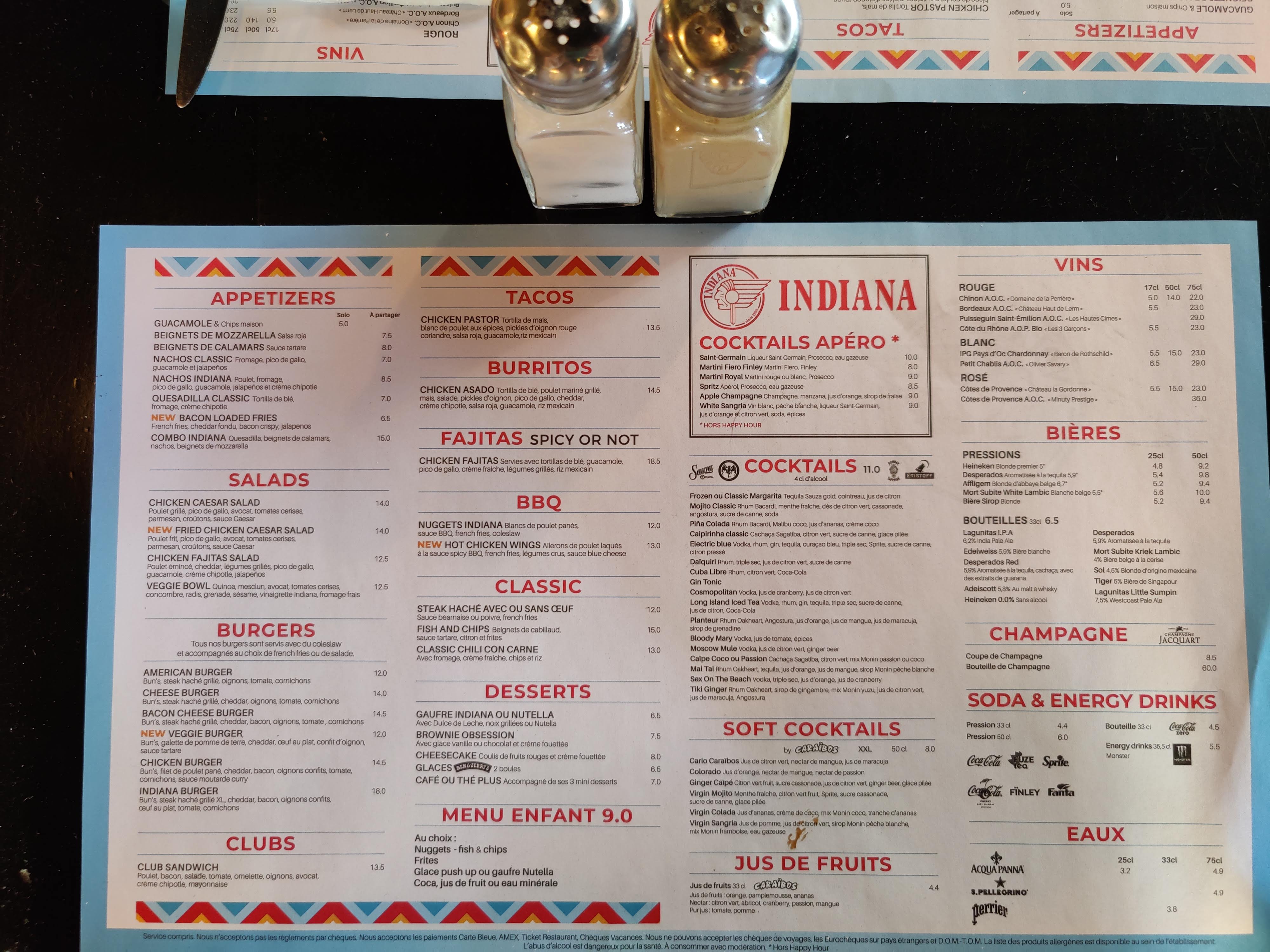 J'aime beaucoup aller en fin de soirée prendre un verre et grignoter à l'Indiana Café. L'équipe est jeune et très sympas , les cocktails sont bons ( bon ok pas un choix de ouf mais les principaux sont là 😉) et les salades sont tip top. Je recommande cet établissement
