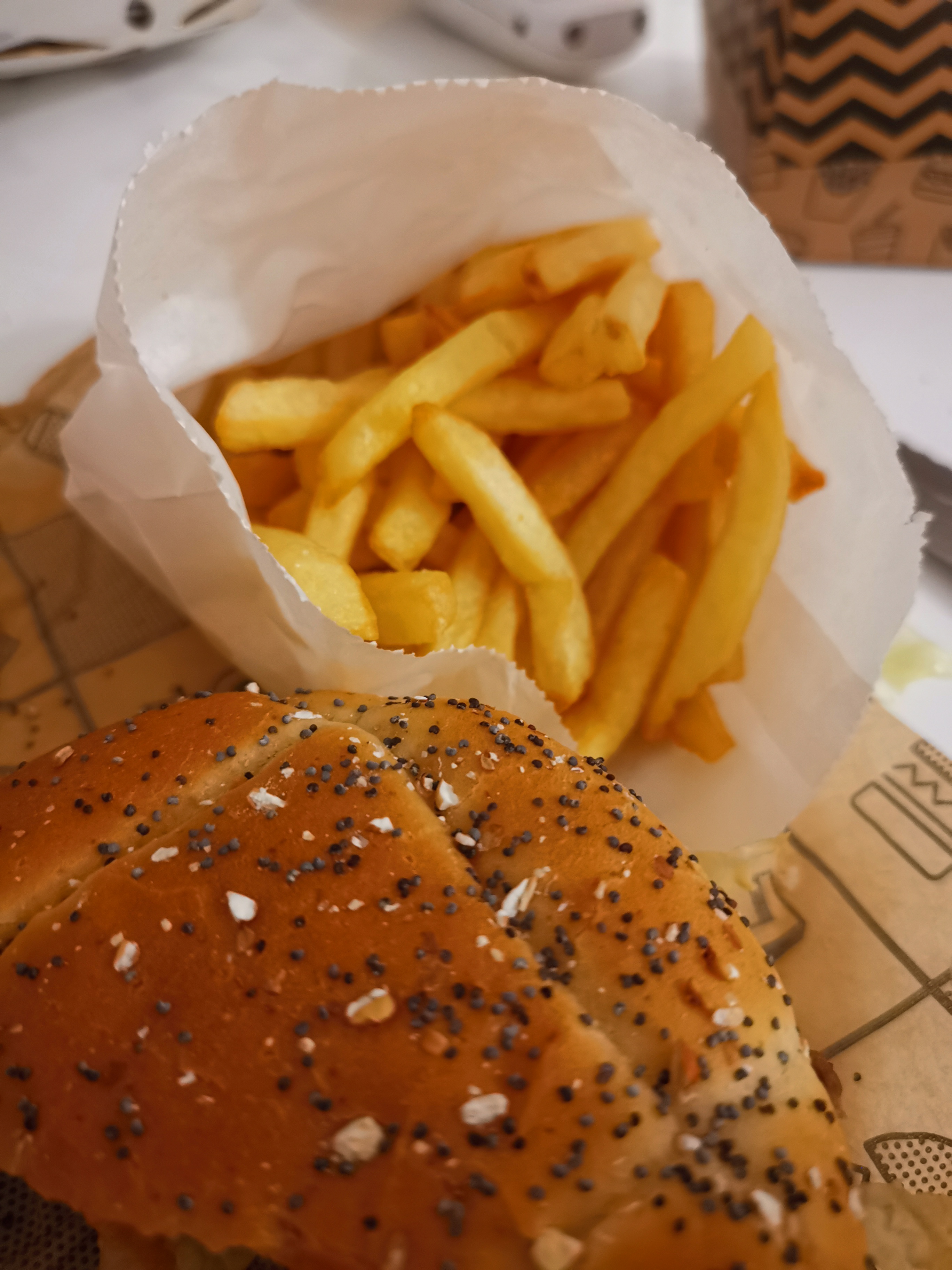 C’était bon, sauf le « bacon » qui était vraiment consistant voir caoutchouteux. Et je rejoins les autres commentaires sur les frites, elles sont vraiment pas top. Vous y gagneriez en proposant des frites maison 👍🏻 Commande hier en uber eat, le livreur a eu énormément de retard mais indépendamment du restaurant.