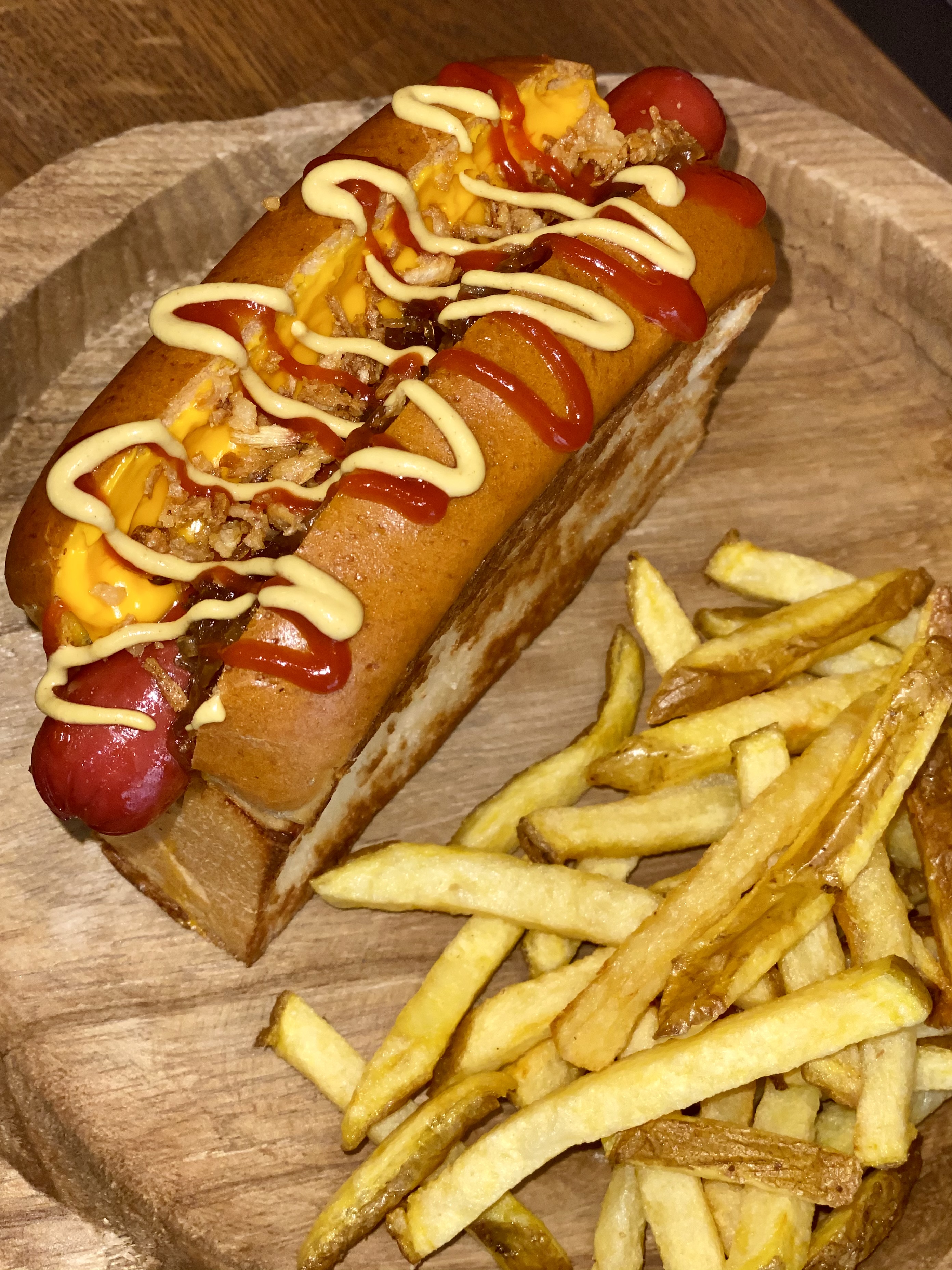 Lieu cosy, propre, accueil super sympa, les frites maison sont un délice et le hot dog que j’ai mangé tout autant. Le pain brioché est exceptionnel !🤤🤤 En + de tout ça, les enfants ont eu des Shocobons et la maman un soda en cadeau 🤩 Je recommande à 1000 pour cent !
