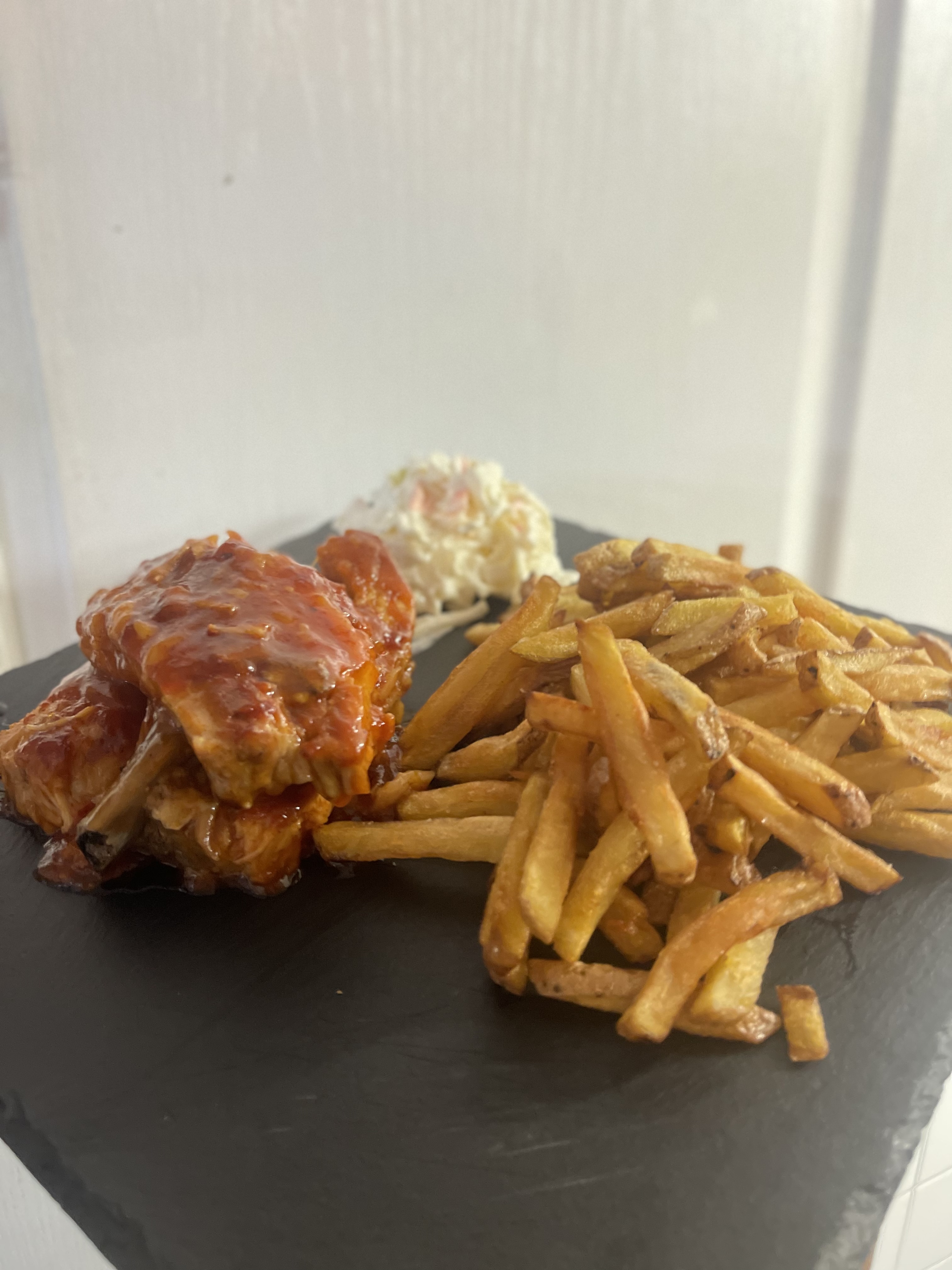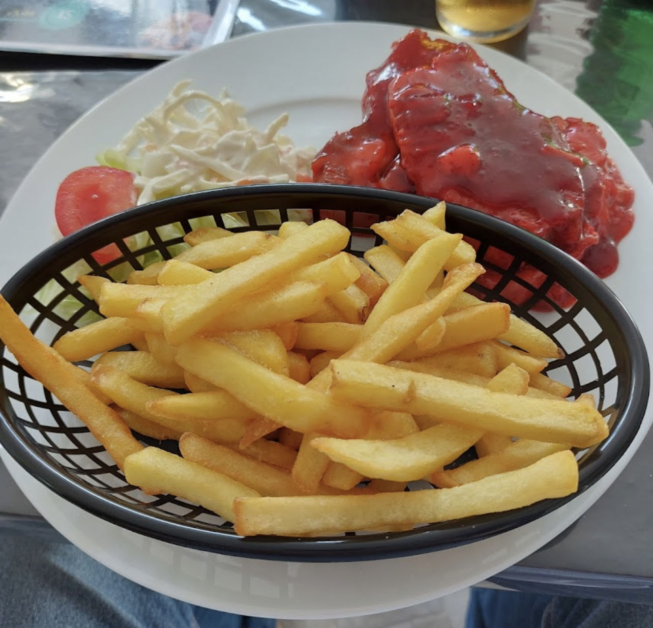 Il y avait une belle assiette de côtes levées à la sauce mamans, je les ai vraiment appréciées avec des frites et de la salade. je vais essayer le hamburger la prochaine fois.. le personnel est gentil et sympathique