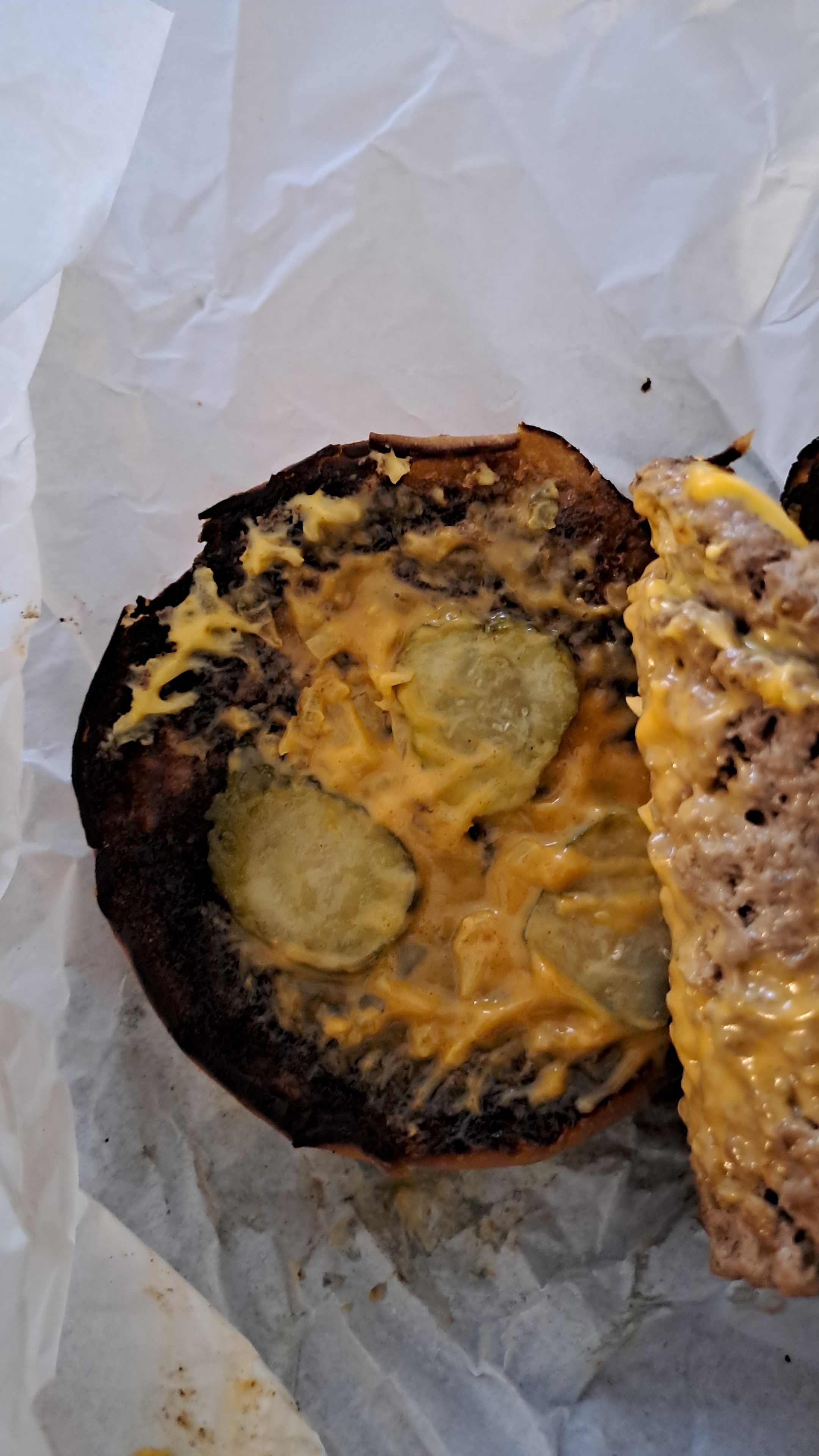 Pain cramé, steack cramé, toastinette de fromage pas fondu, et le tout est arrivé froid. Impossible à manger le burger avait un goût de charbon. Idem pour les frites qui sont arrivées froides et à cela s’ajouter un délai de livraison d’1h30