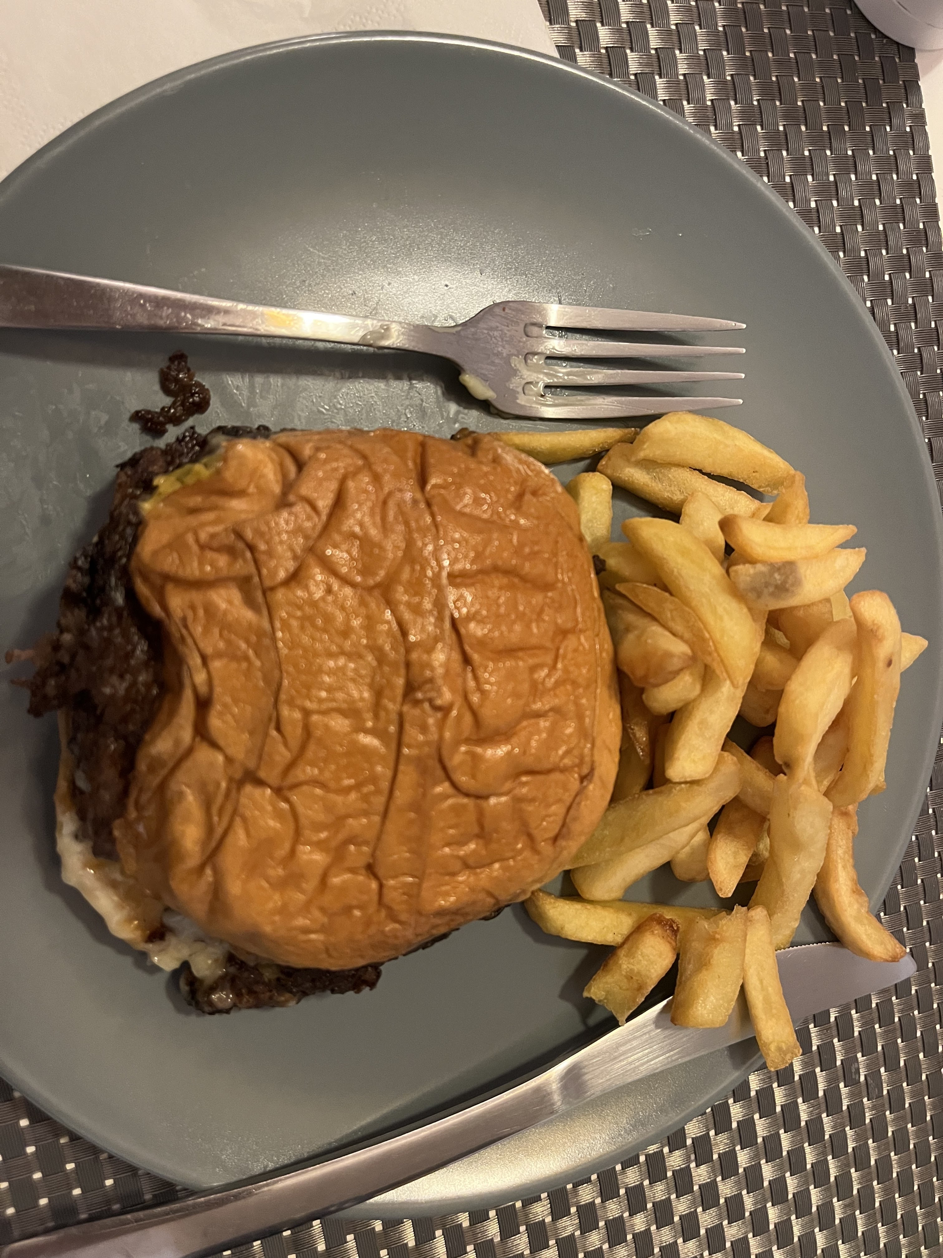 Les frites en petits bouchons étaient bonnes mais le burger vraiment pas. Très gras et mou avec de la sauce sans goût et extrêmement liquide..