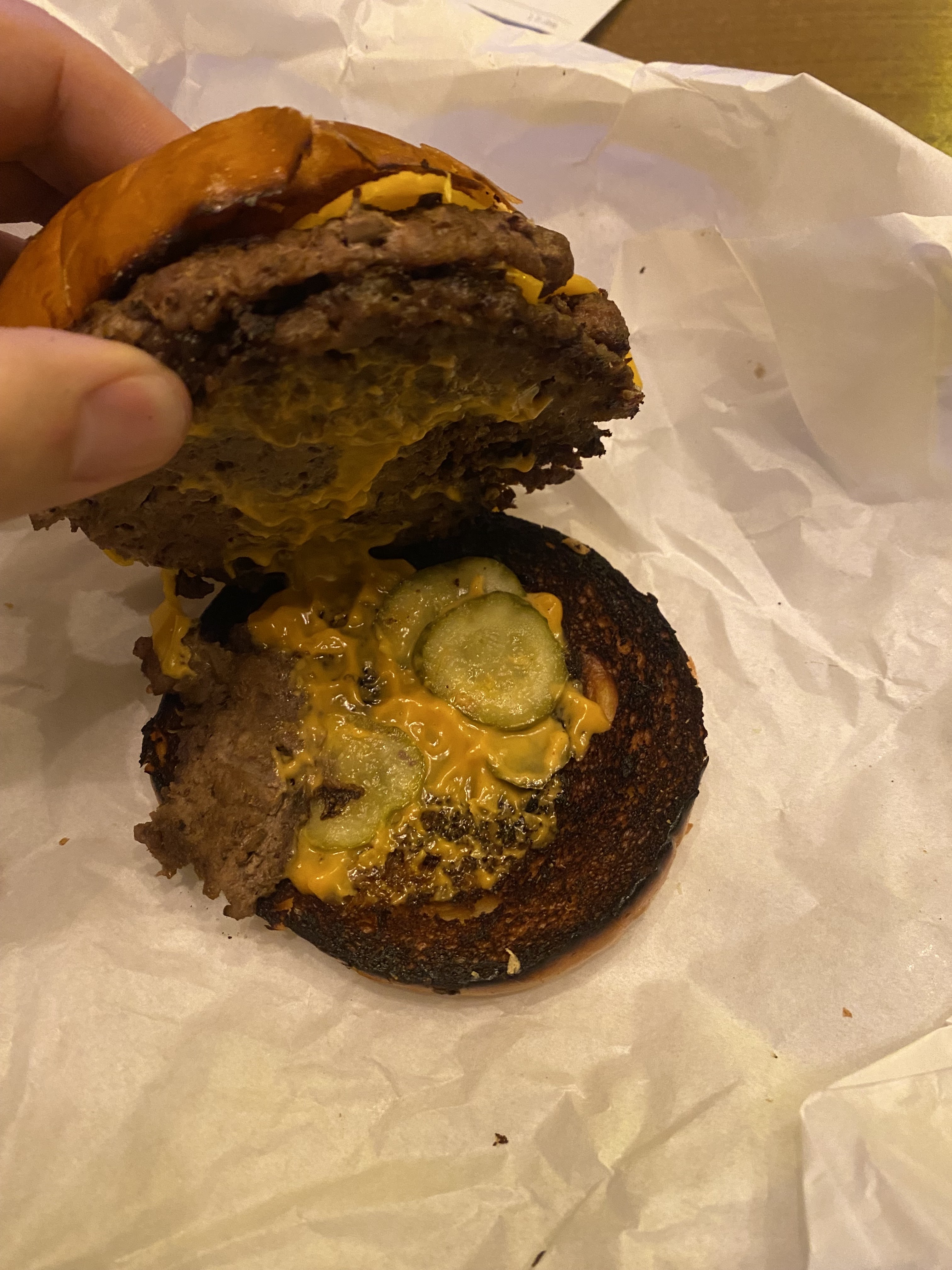 Je laisse rarement des avis purement négatifs mais là faut pas abuser, c’est vraiment infecte, le burger est bourré de sauce biggy, la viande n’a pas de goût, c’est extrêmement gras tout est noyé dans la sauce pour camoufler le goût infecte du burger, comment un burger full produits transformés avec aucun produit frais et une sauce industrielle peut valoir ce prix ? Faut vraiment avoir un palais de doberman pour aimer ça, ceux qui recherchent un bon burger passez votre chemin