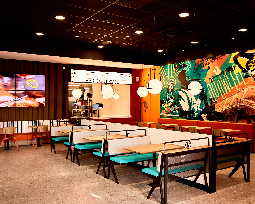Personnel très sympathique. C’est un fast-food. Pas original mais bon. Je cherche toujours le côté cajun de ce qu’ils proposent. Manque cruellement de choix, Il y’a beaucoup de produits mais tout se ressemble. La déco toute neuve est très froide…