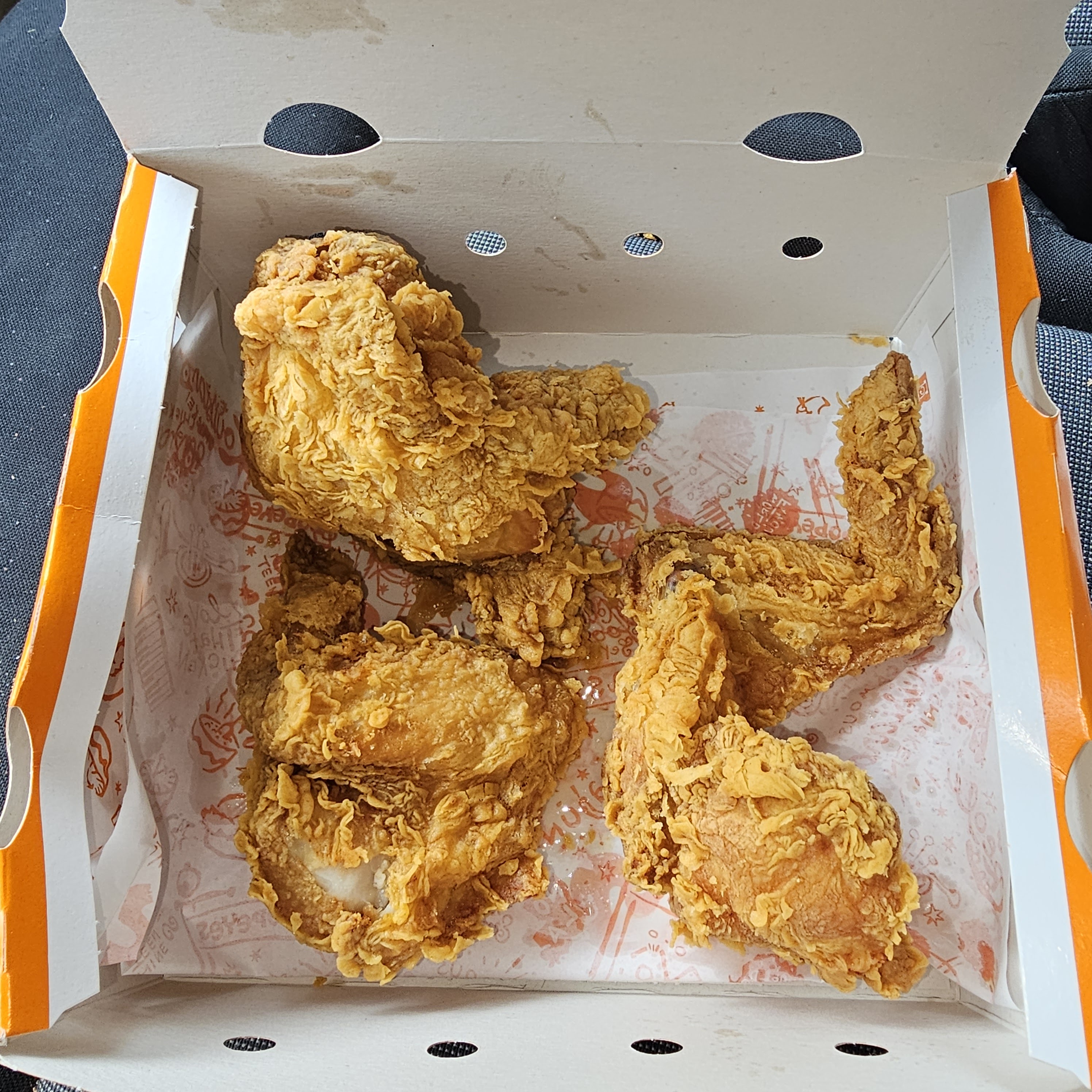Plus de 30 minutes d’attente, alors qu’il n’y avait qu’une seule commande avant moi, aucune excuse pour le retard, et je n’ai pas eu le droit à avoir la sauce que j’avais commandé (c’est tout de même cocasse de manger du poulet frit sans sauce). Évidemment quand ma commande est arrivée tout était froid ou presque.