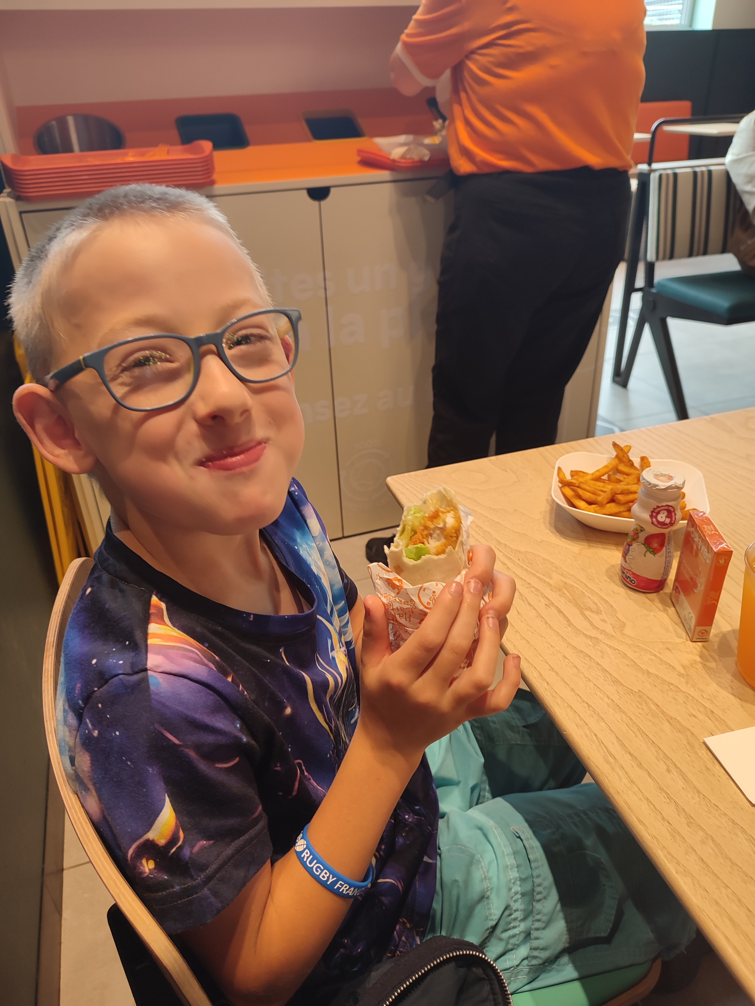Point positifs : ascenseur pour personnes à mobilité réduite, lieu spacieux, ambiance, service à table, les frites sont bonnes. Points négatifs : manque les 3/4 des produits, commande obligatoirement par des bornes qui ne fonctionnent pas toutes et qui n'ont plus de papier, la bouffe arrive froide, goût relativement insipide, quantités de frites très réduites comparé à d'autres fast-food, espace de jeux des enfants non cloisonné donc on passe le repas dans les cris.