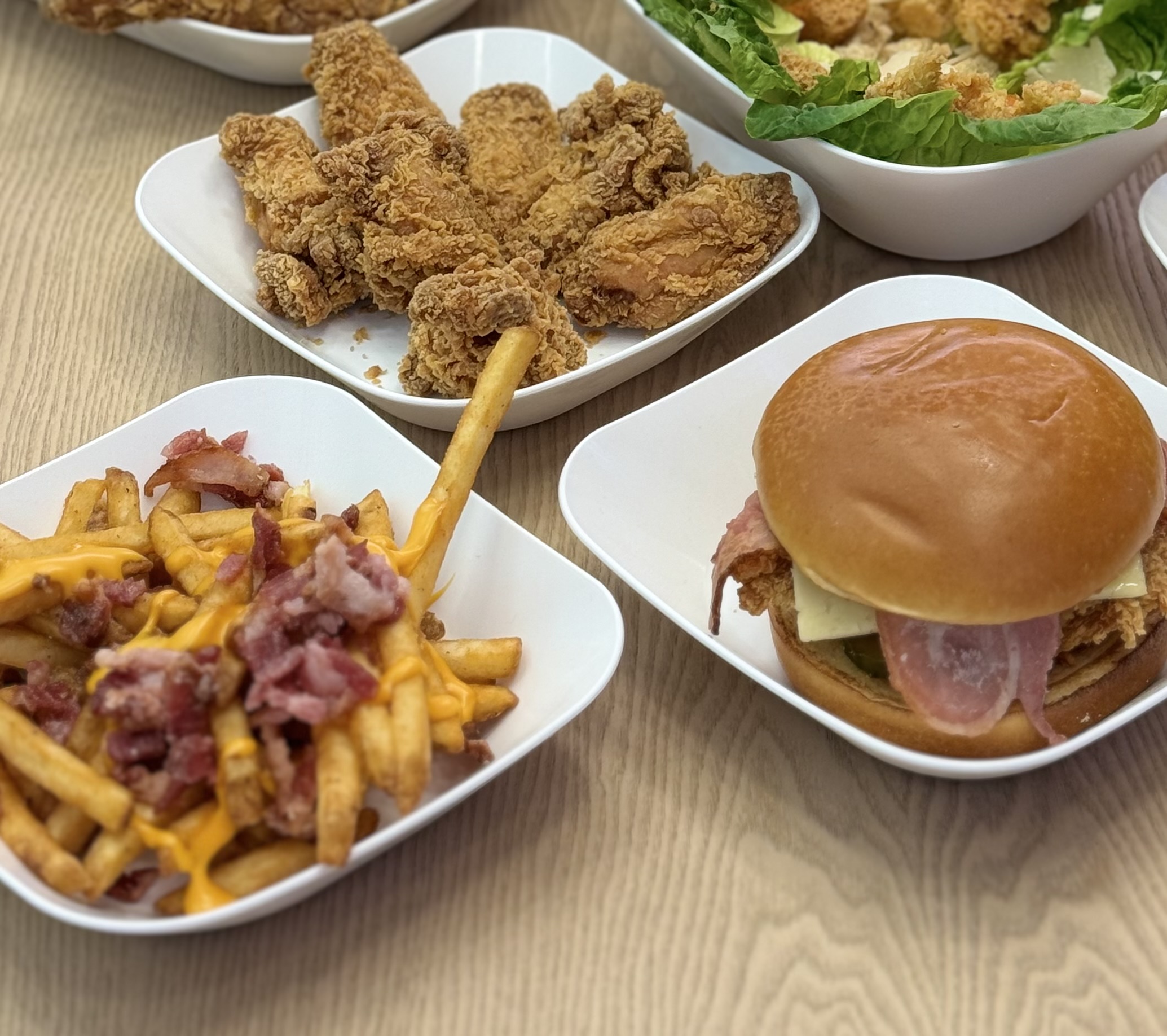 Étant fan de poulet frit, je devais venir tester ce nouveau fast food à Grand place 🍗 J'ai pris les 2 pièces de poulet frit signature et des frites cheddar & oignons frits. La panure du poulet est hyper croustillante et parfaitement assaisonnée, l'intérieur du poulet est tendre ... Parfait ! Les frites sont délicieuses et la quantité est correcte. La personne qui m'a accompagnée a commandé un burger qui était un délice. J'y retournerai assurément pour leur poulet frit que ce soit pour un burger que pour des tenders !! Par contre ce n'est hyper clair quand la commande est passée : on nous sert à table ou on nous appelle ? L'équipe n'était pas très accueillante ... Autres bémols : la commande a été un peu longue à arriver et vraiment peu de sauce à côté du menu. Et pas de toilettes dans le restaurant, il faut aller aux toilettes du centre commercial. Ce n'est pas pratique, même si j'imagine que c'est le cas pour les autres restaurants de Grand Place.