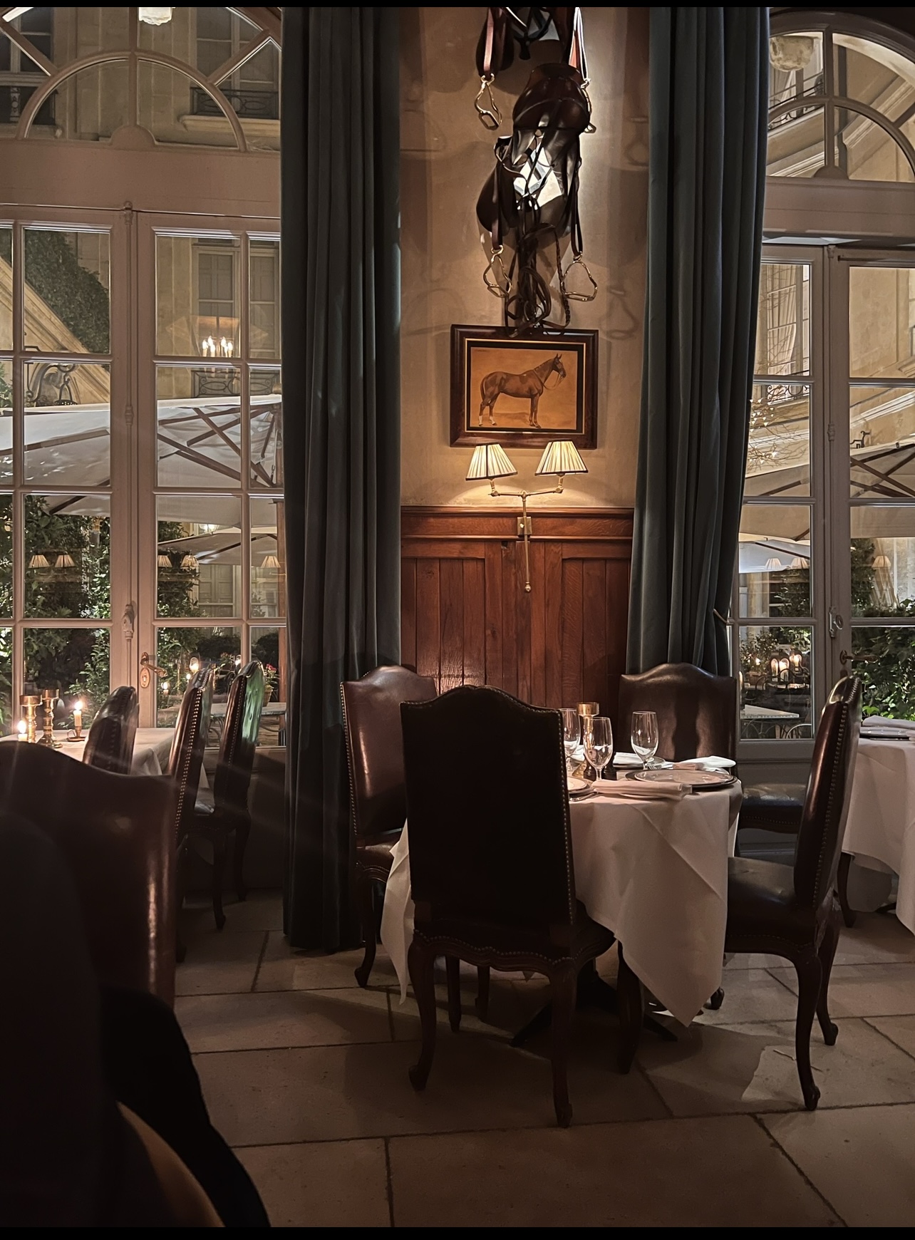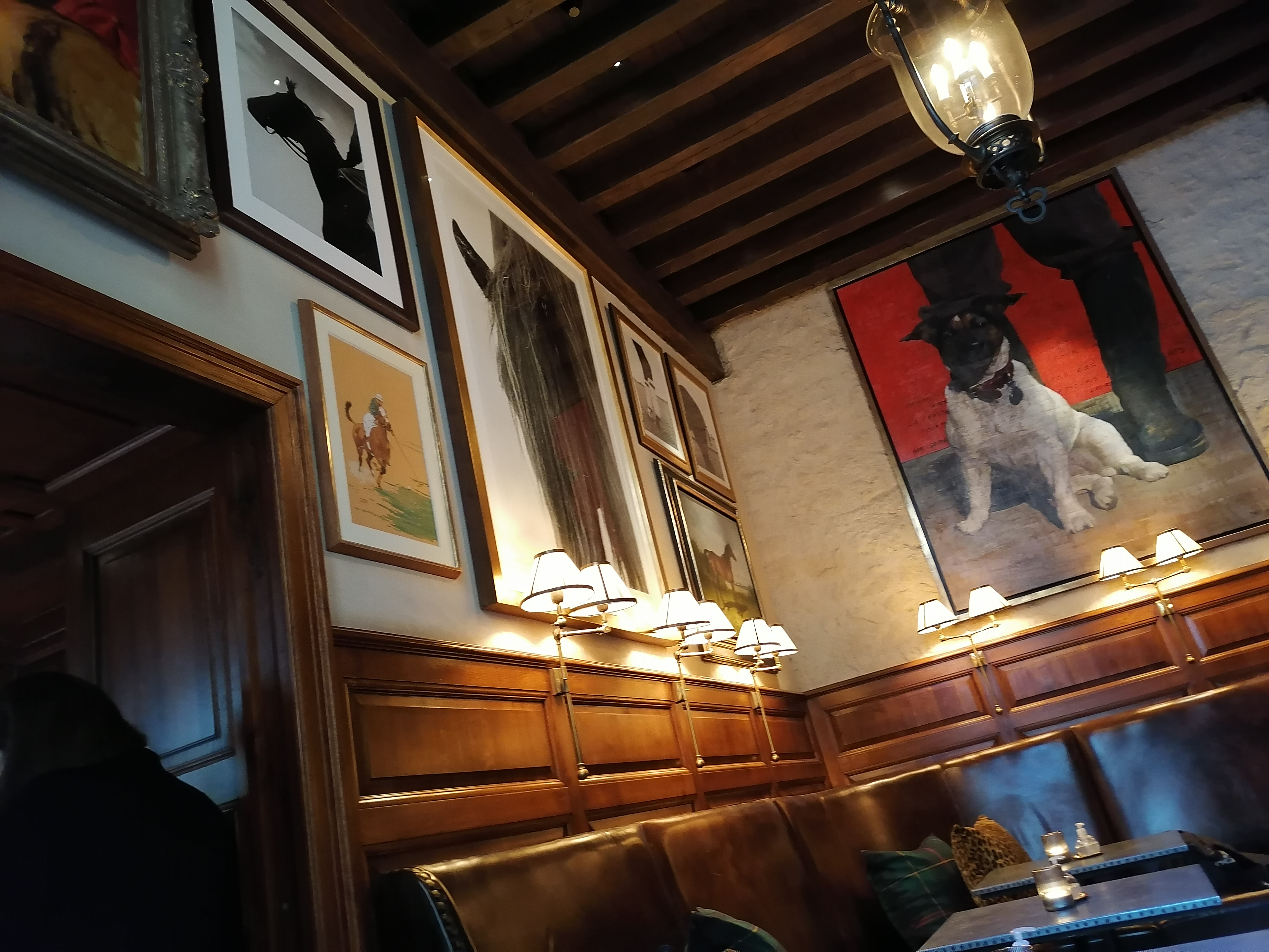 Vous êtes boulevard Saint Germain, et rien n'est très visible. A part 2 petites vitrines exposant des vêtements de la marque Ralph's Lauren collection haute couture, vous avez accès à un porche. On contrôle votre réservation, obligation sanitaire en présentant votre Pac sanitaire, et vous entrez dans un merveilleux hôtel particulier. Une cour intérieure, bien agréable l'été, reçoit un nombre conséquent de clients. Sinon, le maître d'hôtel vous propose de déjeuner à l'intérieur, dans une salle en longueur, donnant sur le jardin. La décoration murale présente des tableaux se rapportant à des scènes de chasse. La carte est courte, mais de grande qualité. États-unis oblige, origine de la marque, un choix conséquent de Hamburgers vous est proposé. Les plats sont parfaits, et de qualité. Par contre gros mangeurs s'abstenir. Personnel agréable, prevoyant, à l'écoute du client, toujours prêt à vous être agréable. Vous passez un agréable moment. C'est un peu cher, mais comme le dit la rumeur, quand on apprécie, on ne compté pas. Alors.!