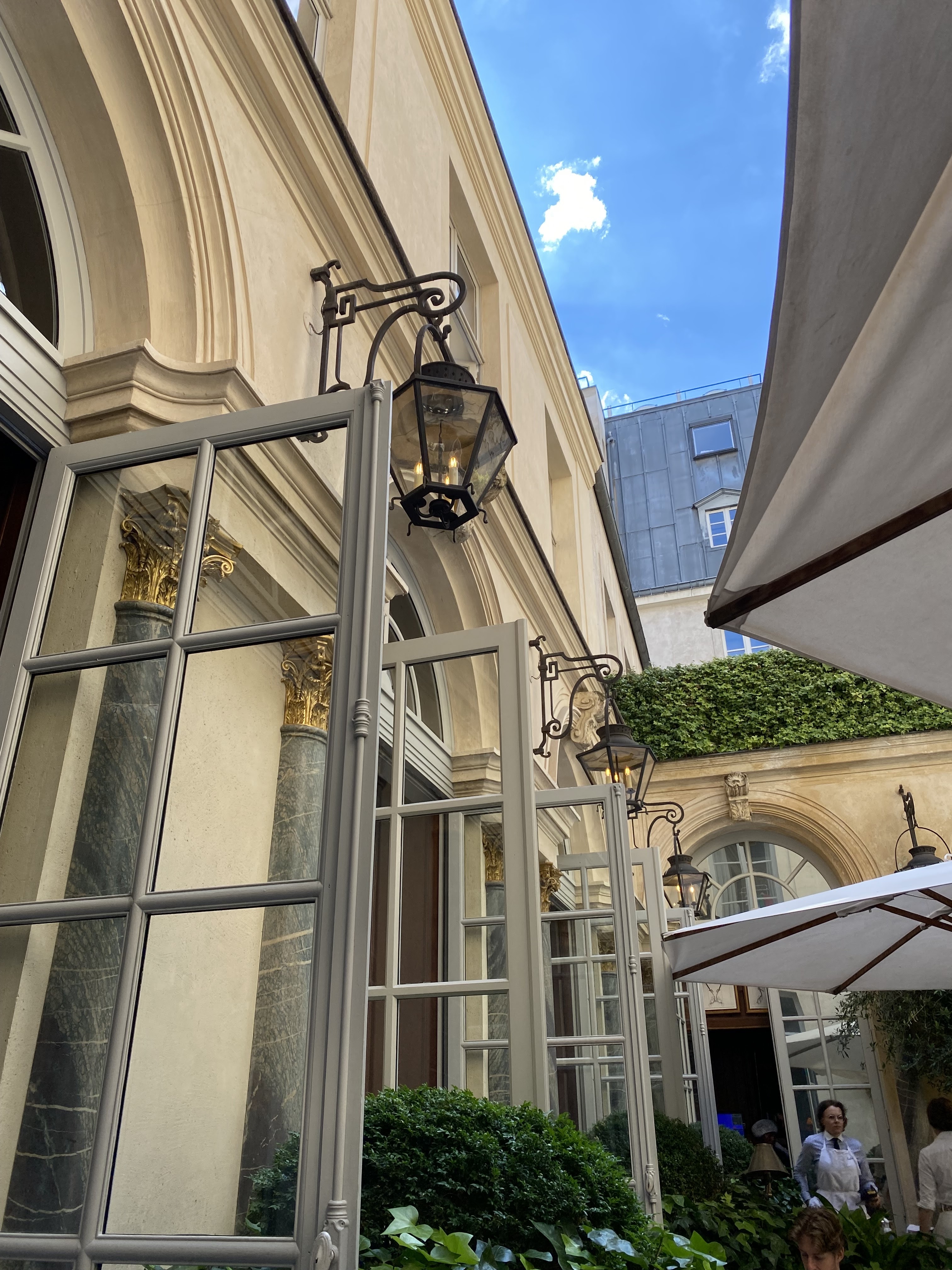 Première fois dans ce lieu pour se restaurer sans avoir réservé = de ce fait nous n'avons pas pu déjeuner dans le patio qui est the place to be pour déjeuner en été. Pas grave, nous étions pas loin, petite table à l'intérieur où nous avons pris du snacking cf photos blinis, radis& saumon et toasts à l'avocat 🥑 avec de l'eau et un verre de Chablis = un vrai délice 👌Pour couronner le tout un café ☕ accompagné de pop corns préalablement plongés dans du caramel ou autre délice sucré 💫 Endroit très classe tant par le décor, les meubles, les personnes au service, la restauration. Je recommande vivement cet endroit en prenant la peine de réserver. Dans cet hôtel particulier, une visite de la boutique qui jouxte le restaurant couronne le tout avec autant de classe ✨