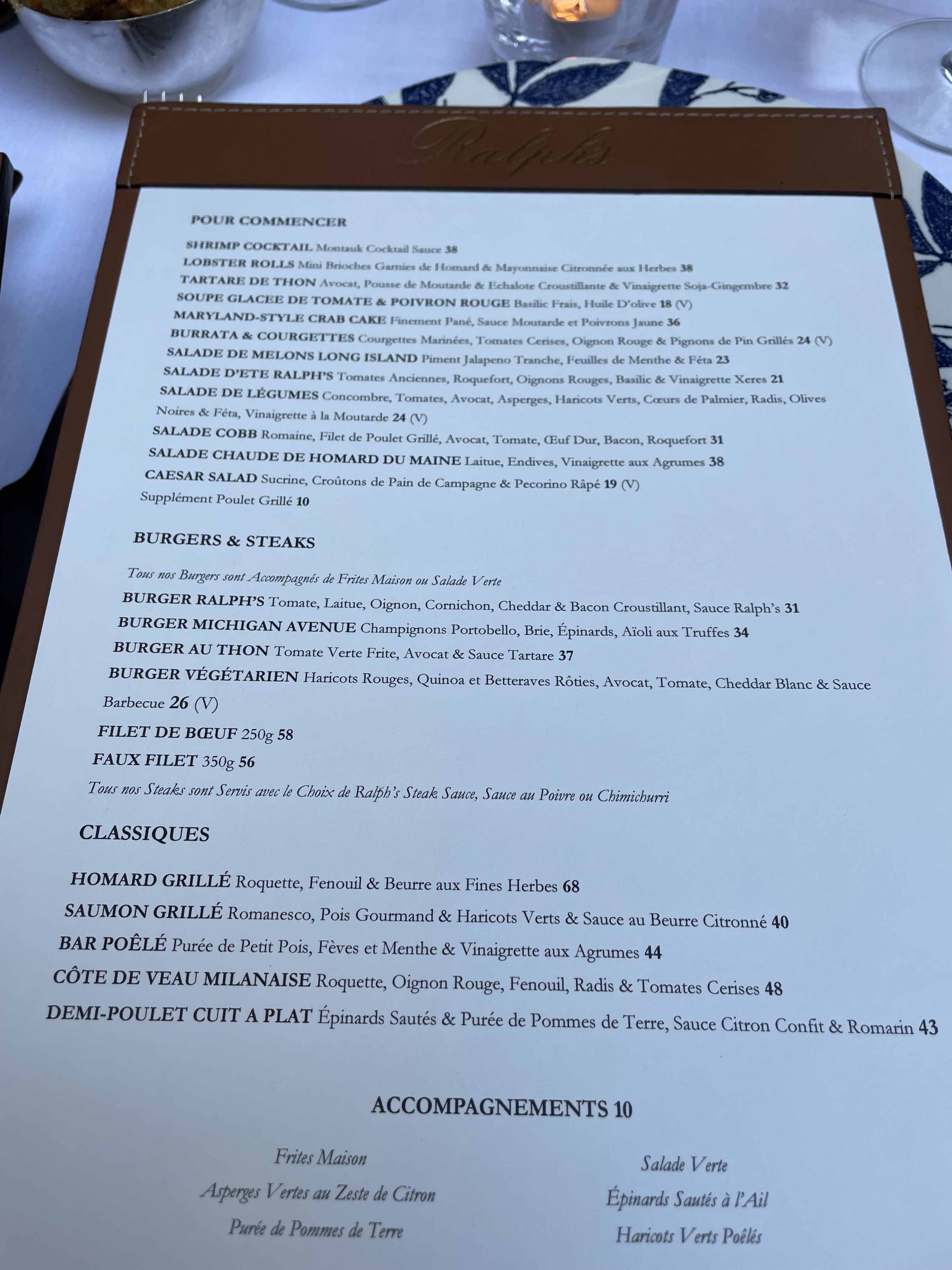 Ici, tout est imaginé pour permettre aux clients de passer un moment de détente, dans une ambiance à la fois élégante et décontractée. Le service y est attentif et efficace, les lumières tamisées et le choix de la musique sont très réconfortants , les plats américains, avec leurs petite touche française, sont très gourmands. Merci Ralph’s, à très bientôt.