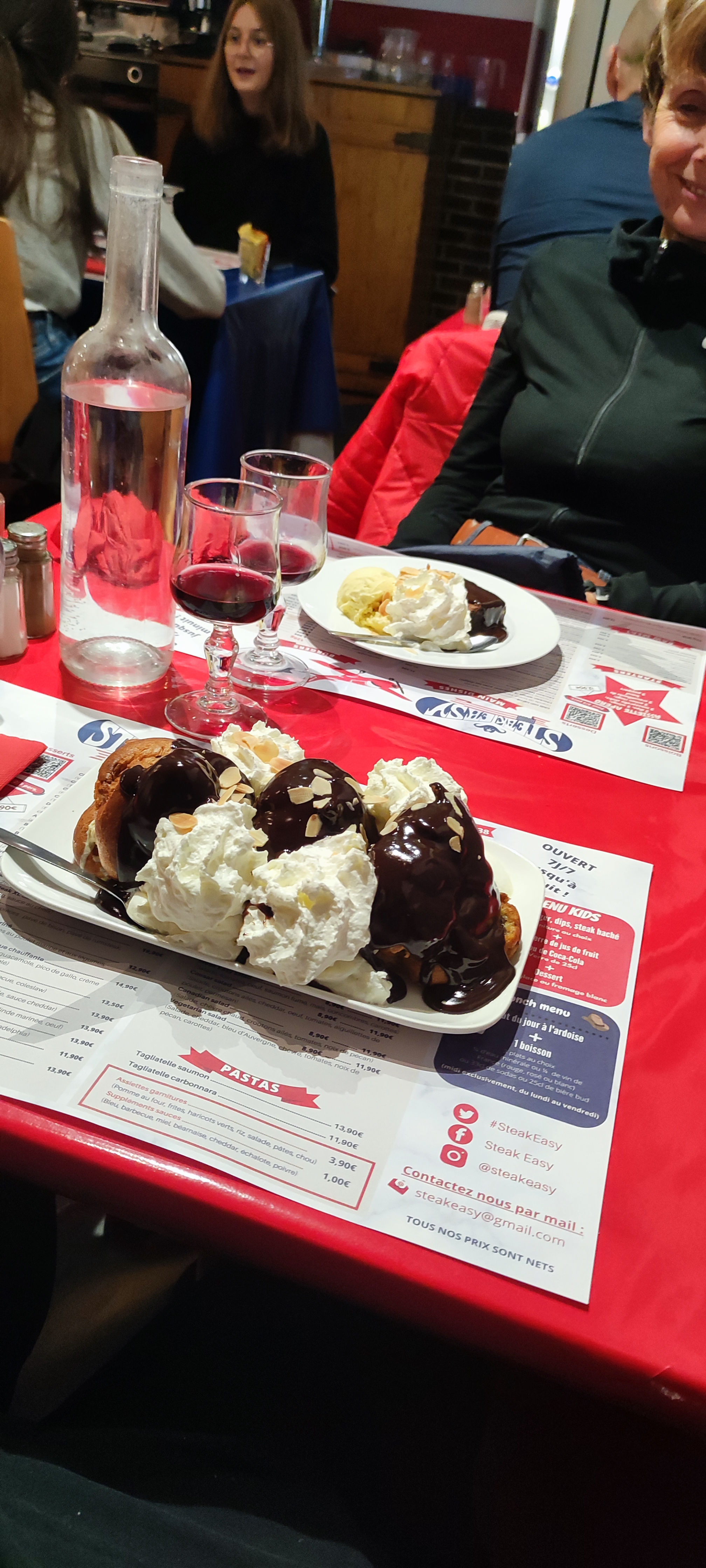 Excellent plat du jour à 9,80€ et en dessert les profiteroles avec de la glace à la menthe, un régal.
