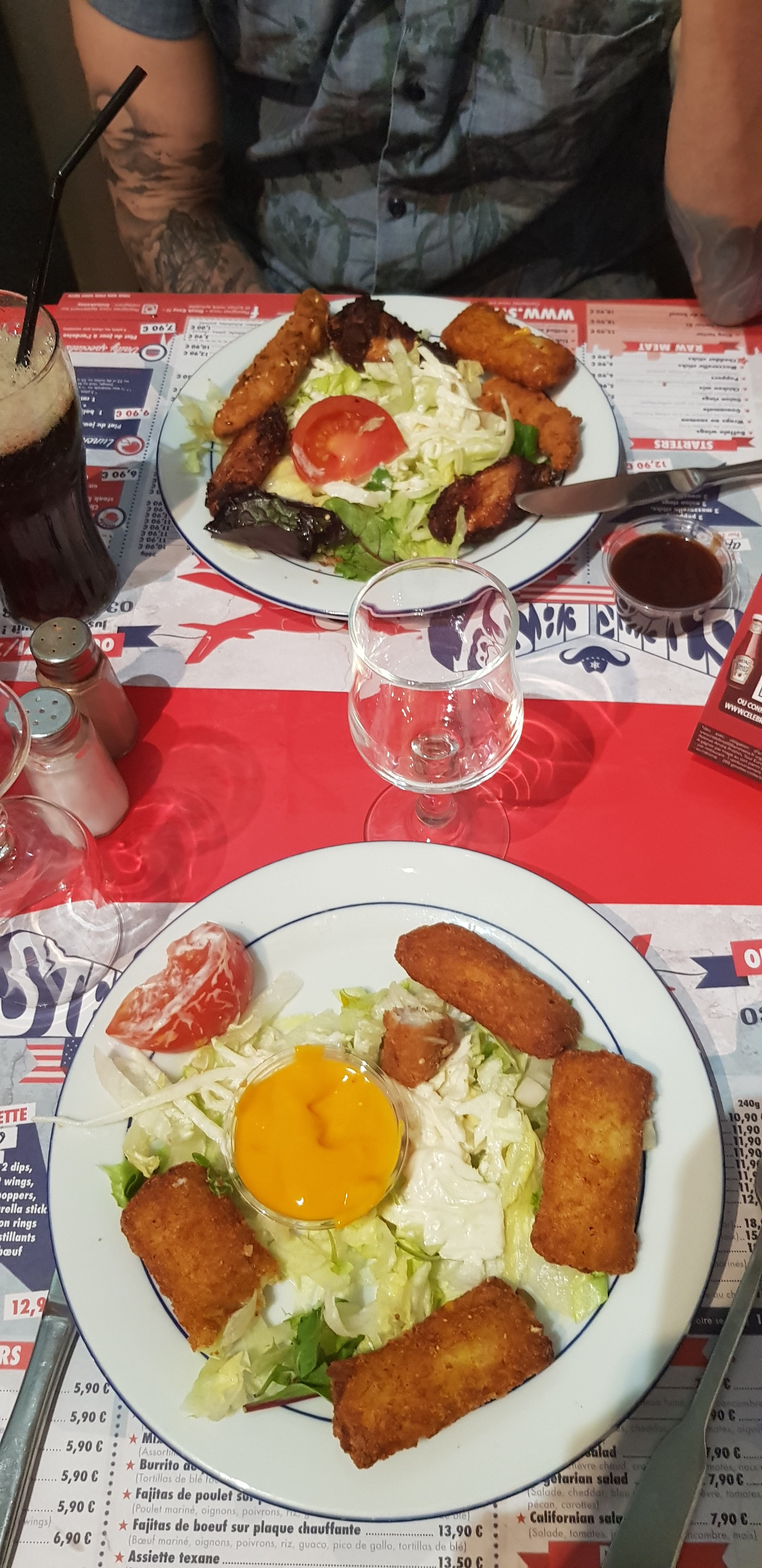 Un concept original mais pas abouti. Ambiance nord américaine hormis la musique et les projections de foot non -US. Fraîcheur et qualité des plats douteuses. BBQ ribs mal digérés, frites très grasses, fajitas servies froides avec odeur suspecte signalée au personnel mais sans retour. Dommage car déco et service agréables.