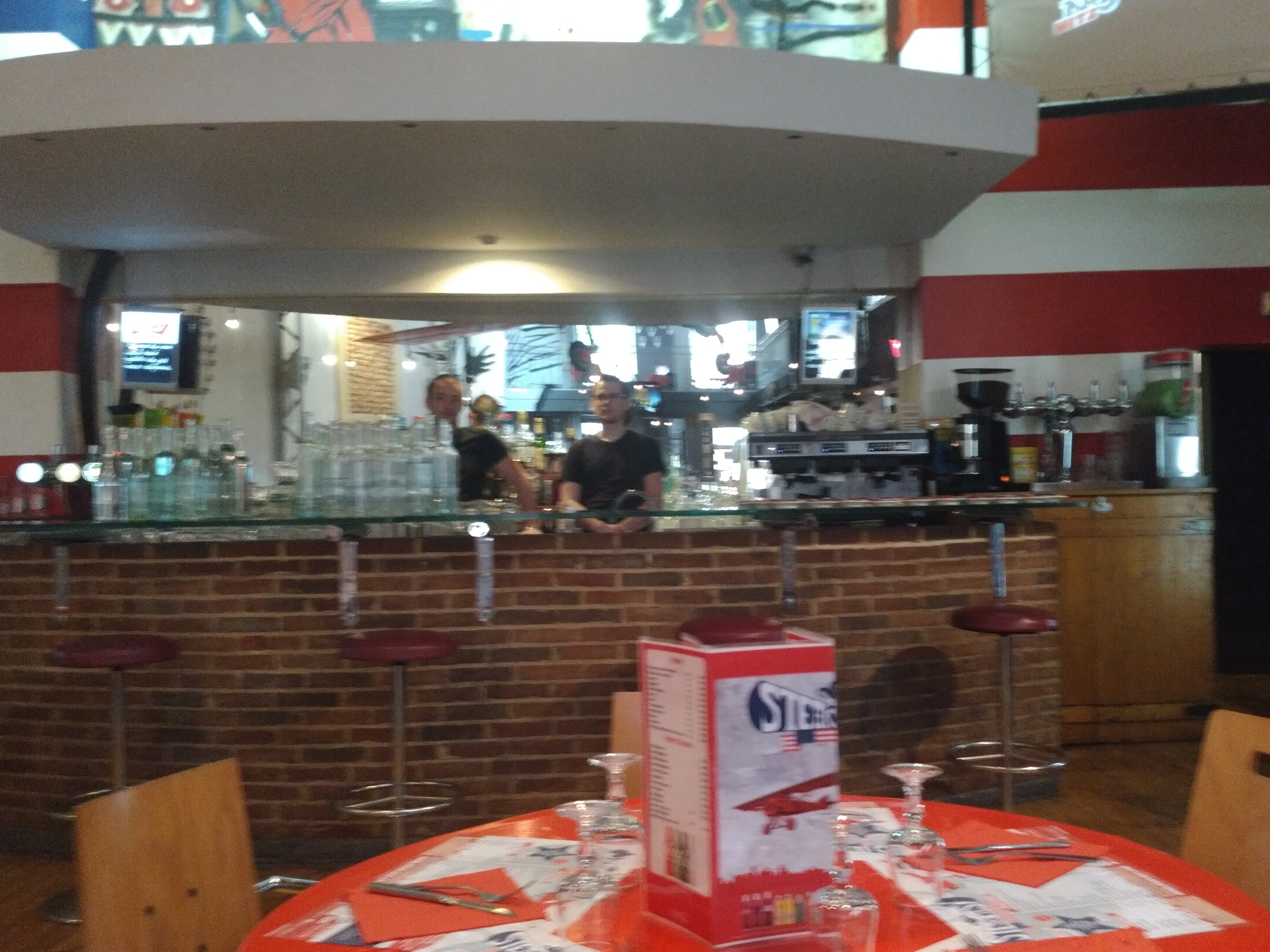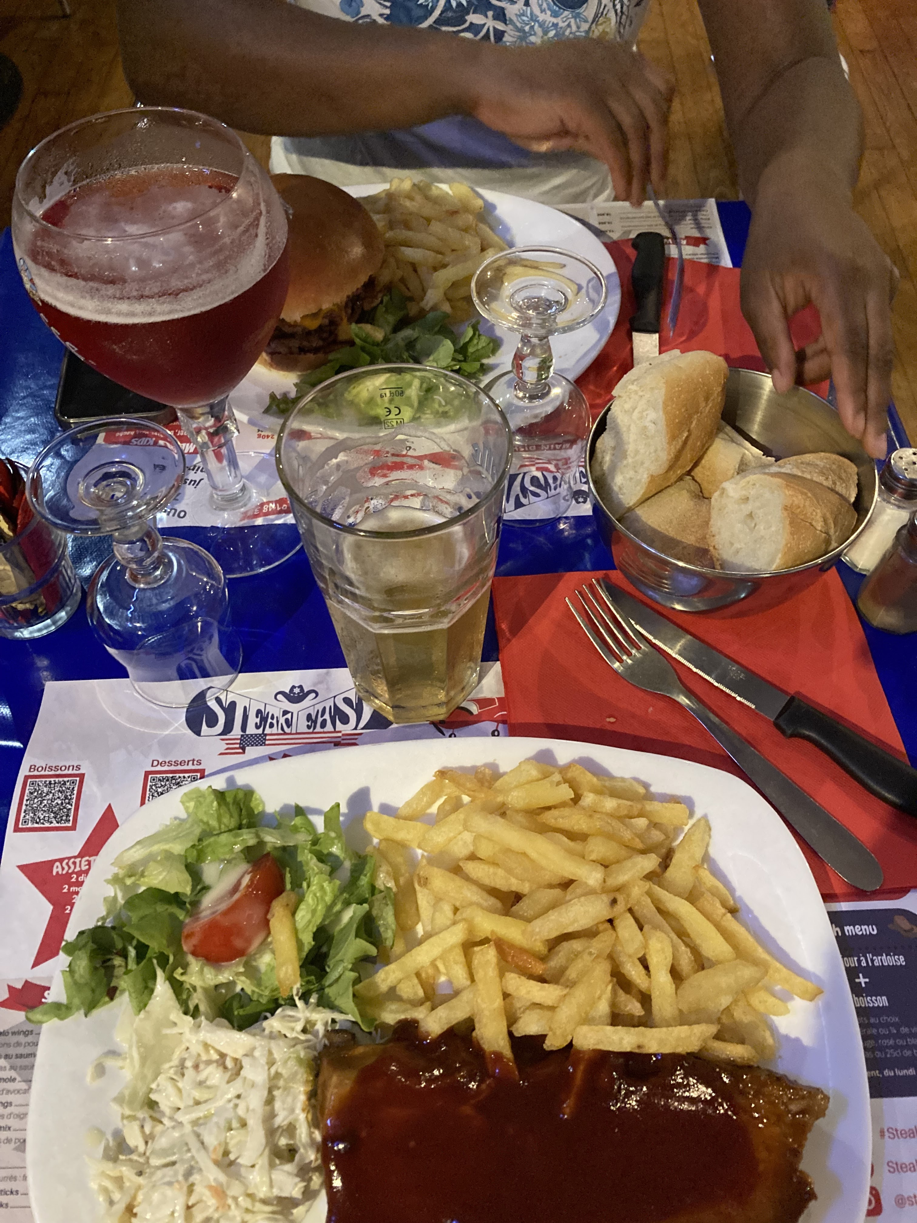 La déco est très sympa, bonne ambiance et surtout un large choix de plat. Nous avons pris un burger et un ribs . Je recommande cet endroit