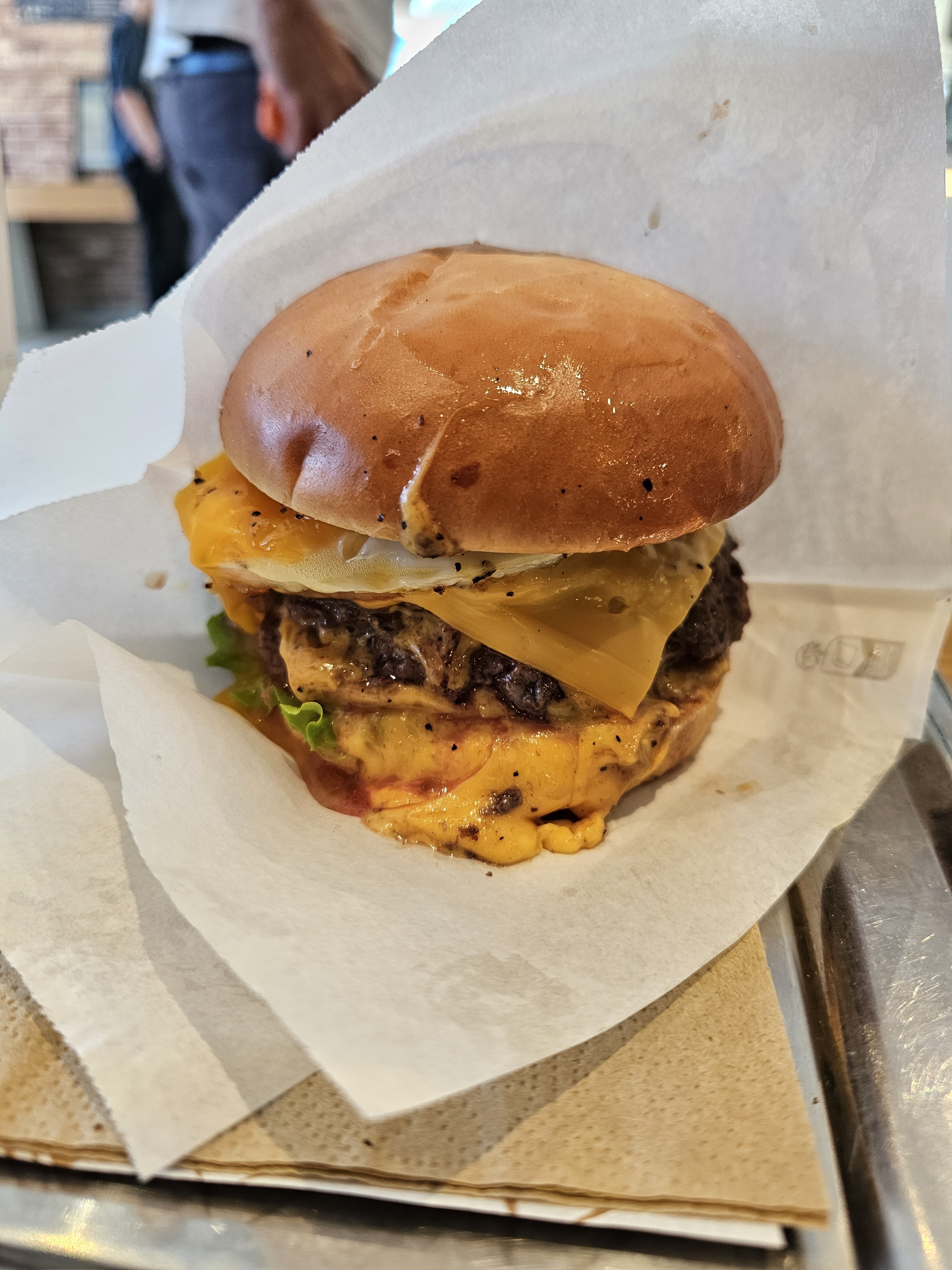 Très bon burger.J ai pris celui au fromage avec fromage+ Manque un peu d’ambiance dommage Et le prix un peu cher environ 20 e