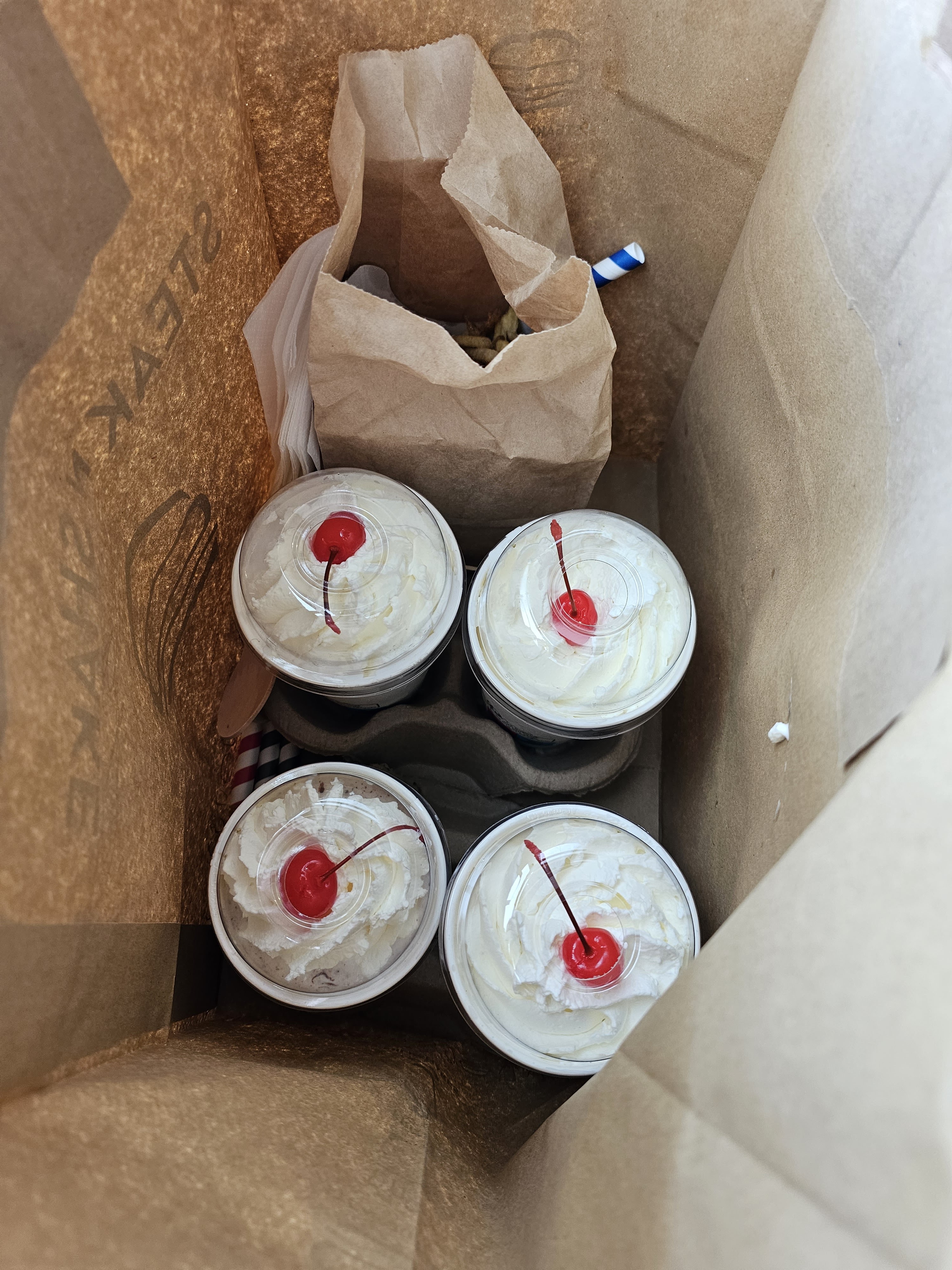 Des milkshake sans chantilly, des emballages et couverts dégueulasses...mais un prix, toujours le même...que celui de quelqu'un servi correctement. J'ai plus envie de revenir.