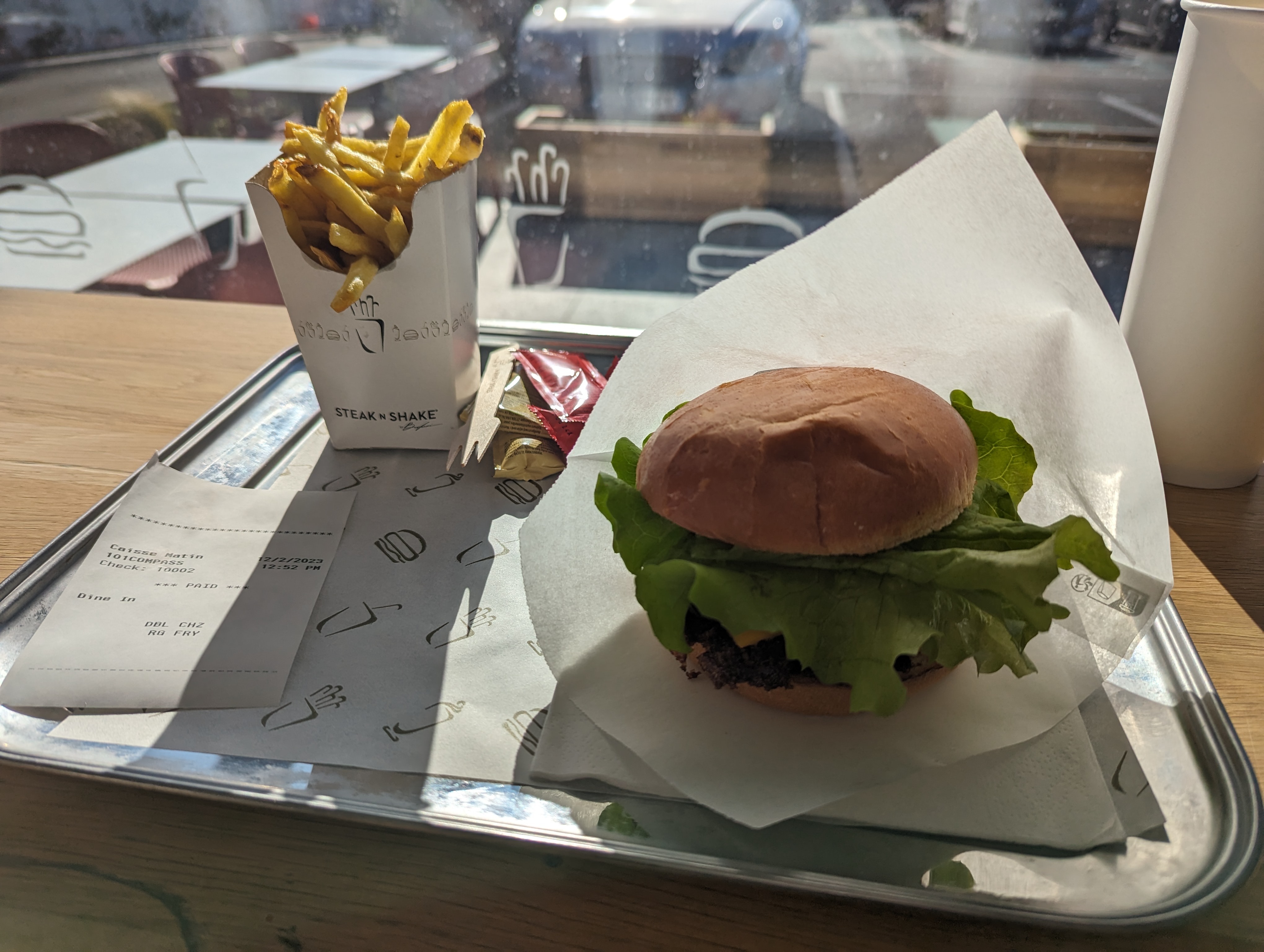 Un steak n Shake à la Valentine de qualité !! Merci pour ce drive efficace ! Je recommande le triple guacamol ! Les frites au cheddar bacon de reve !!! Et je ne parle pas du milk Shake !!