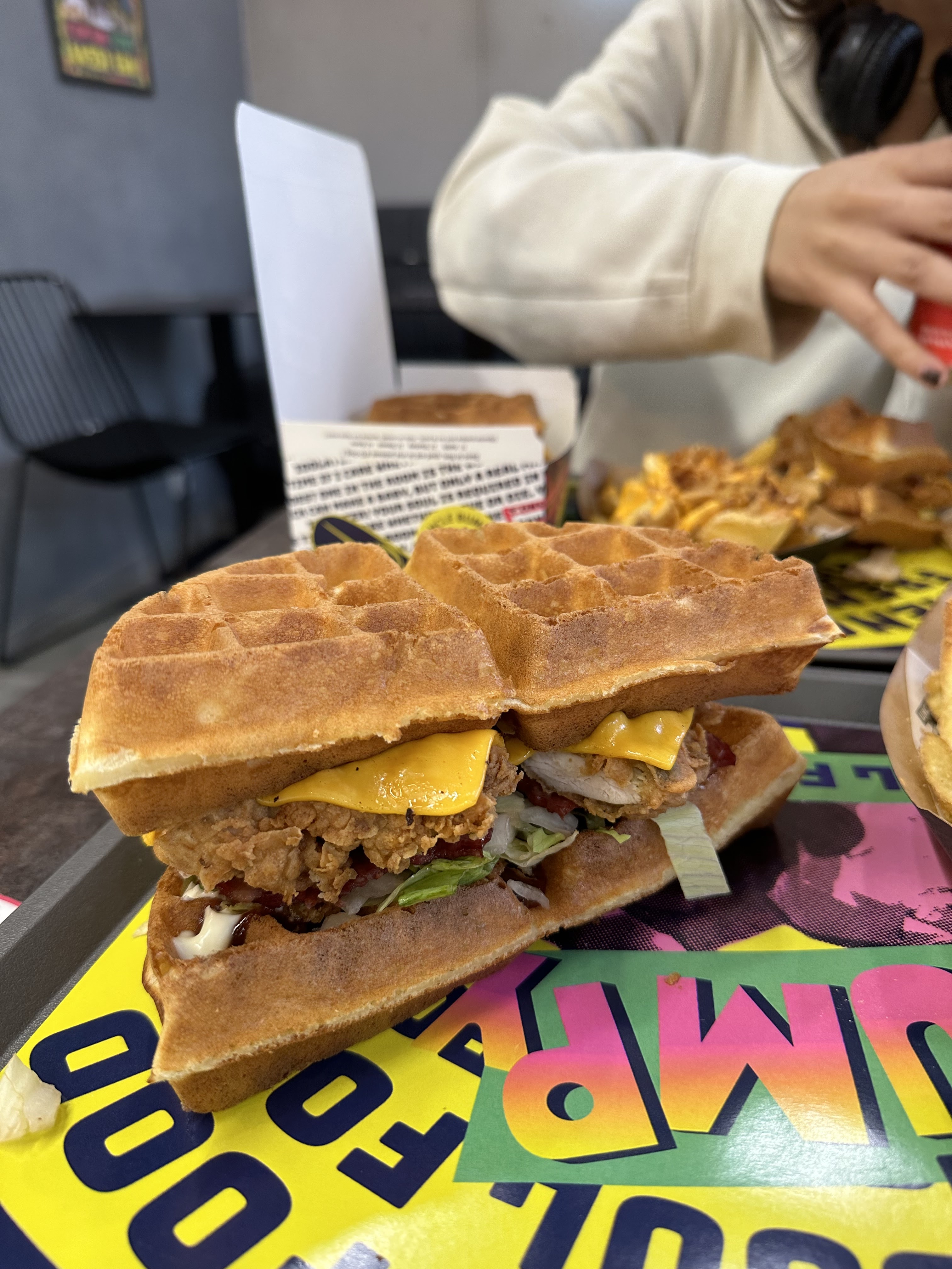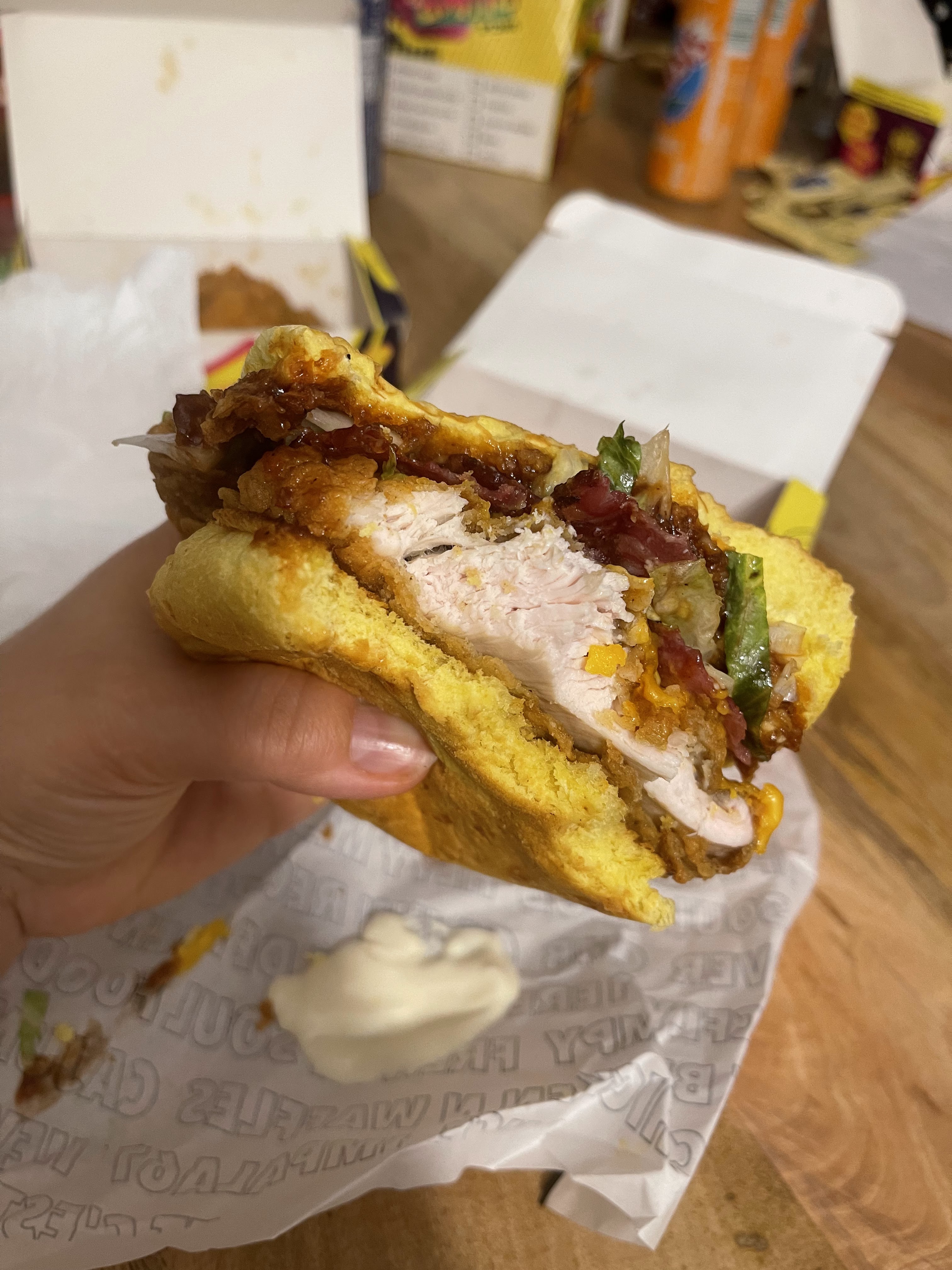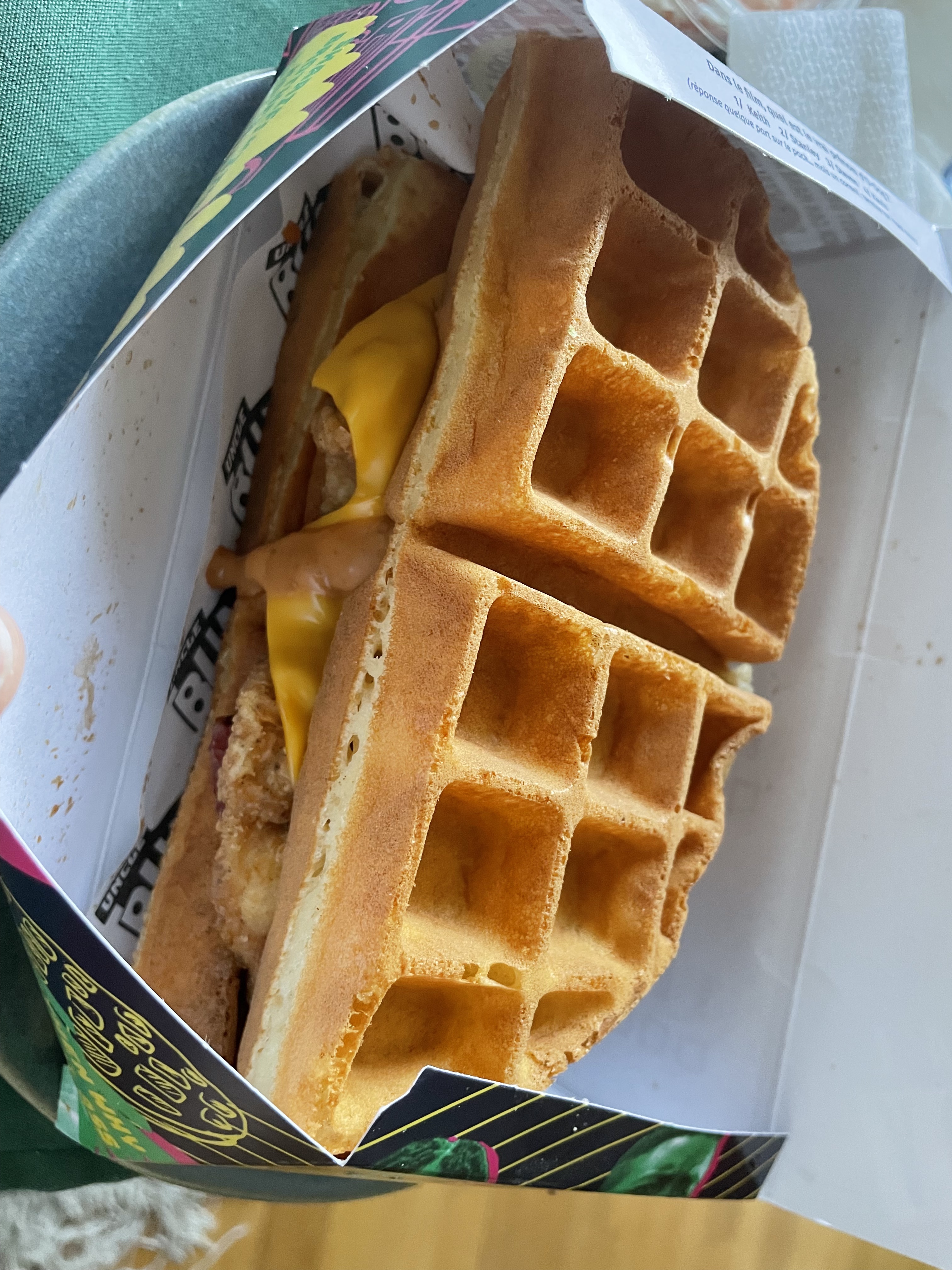 On mange + de panure qu’autre chose, c’est vraiment exagéré. Même chez KFC y a plus de poulet, (c’est dire à quel point c’est le néant) je suis ultra déçu. La seule chose qui vaut le coup ici (ou pas) c’est la gaufre 🧇