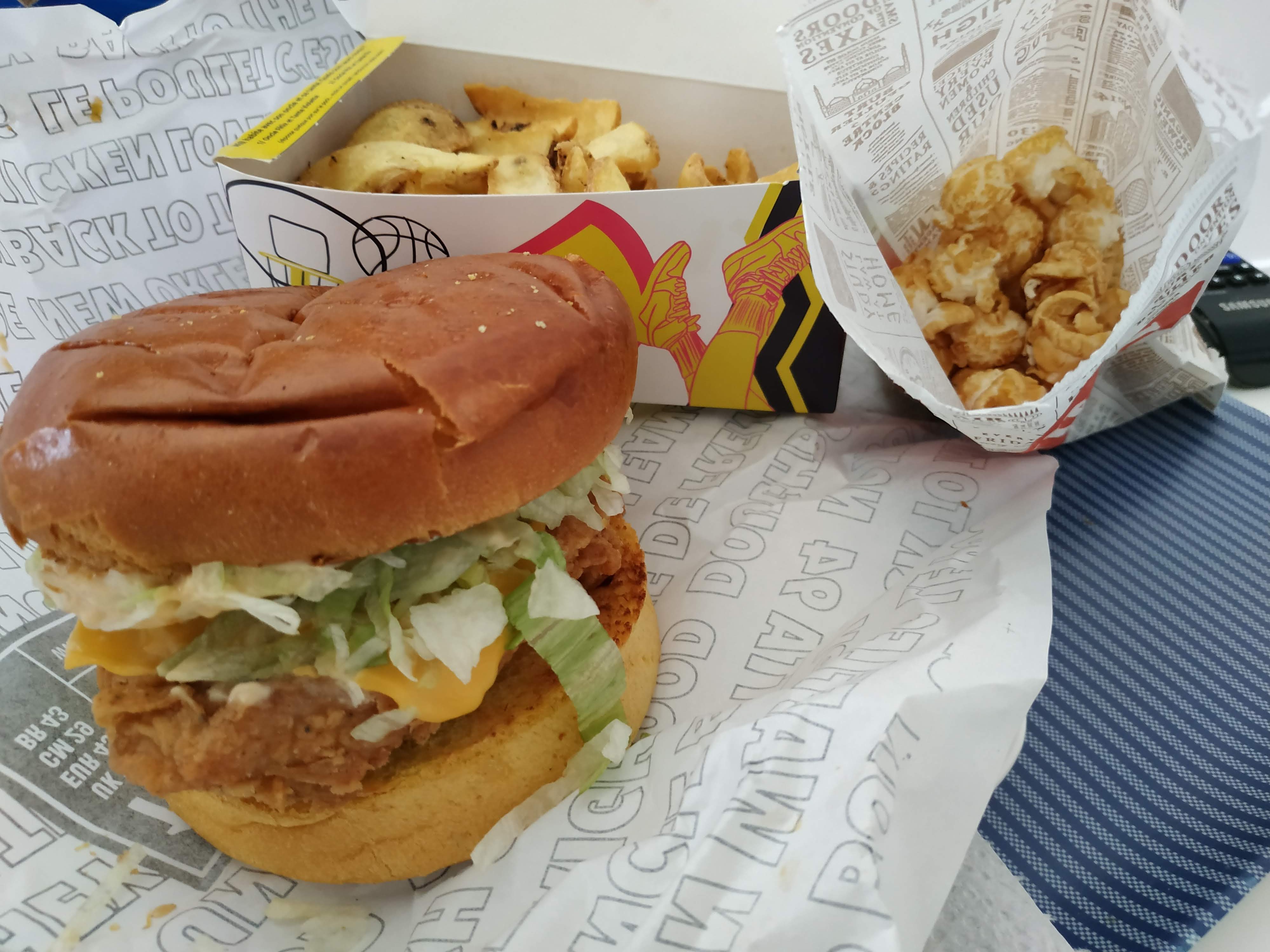 Le burger était excellent ! Goûtu, crémeux et moelleux c’était parfait ! 🤩🤩 Je me suis régalée ! Super rapport qualité prix et petite surprise avec le popcorn en cadeau ☺️